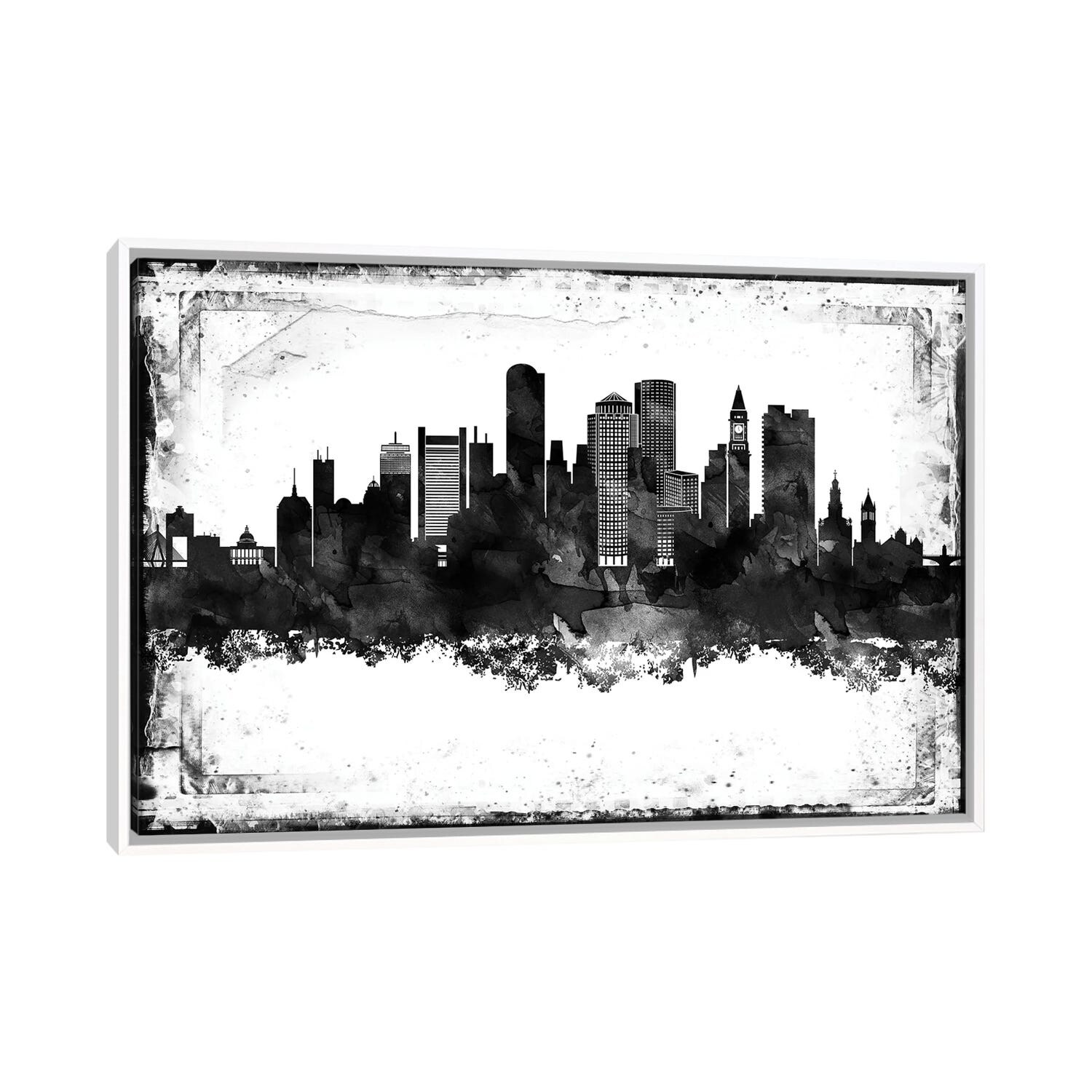 iCanvas "Boston Black And White Framed Skylines" by WallDecorAddict Framed Canvas Print