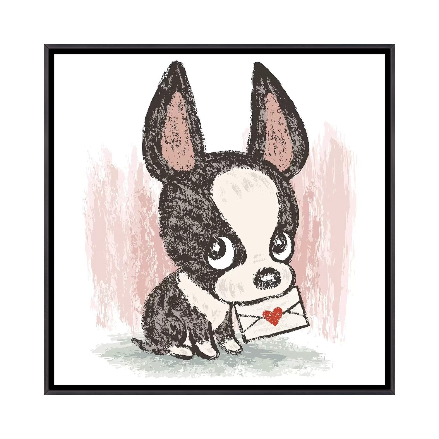 iCanvas "Boston Terrier And Letter" by Toru Sanogawa Framed