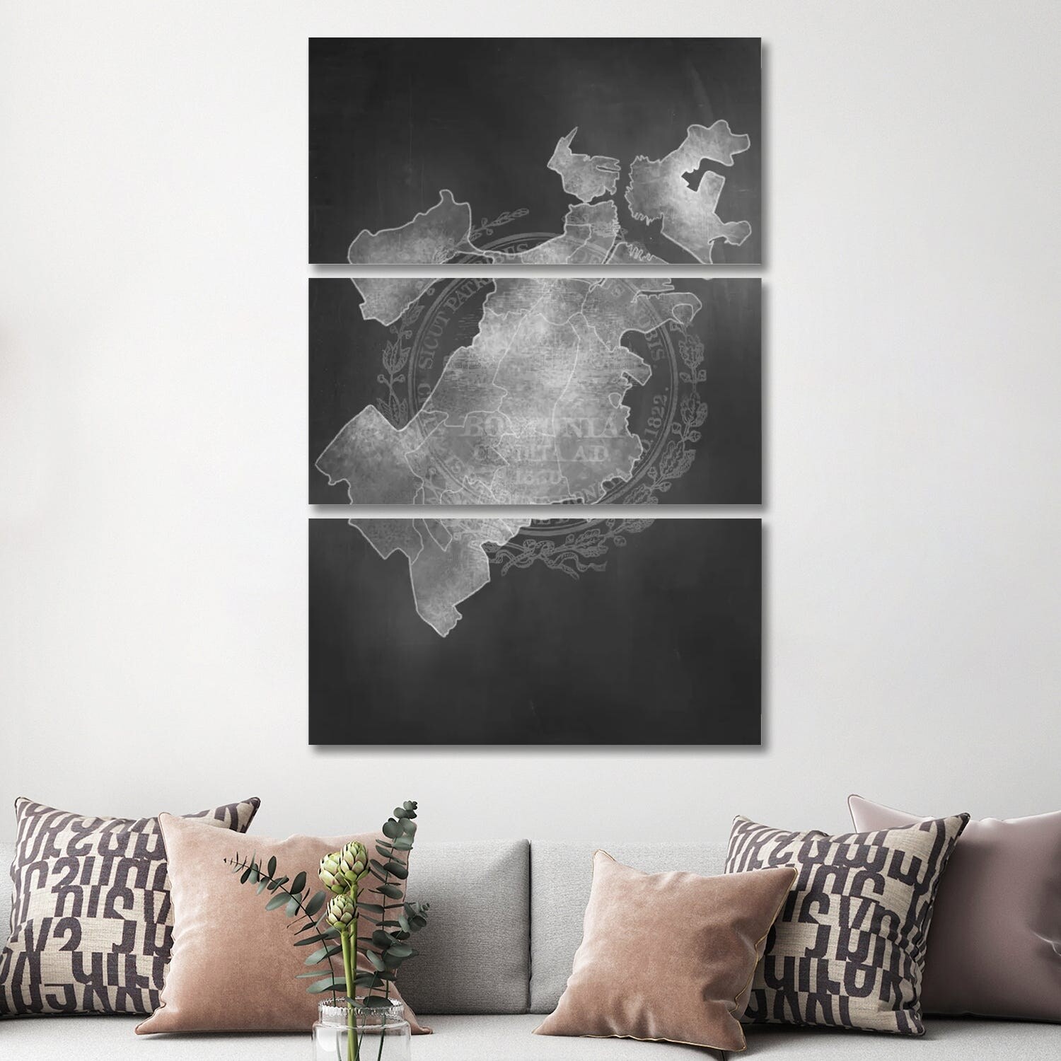iCanvas "Boston Chalk Map" by 5by5collective 3-Piece Canvas Wall Art Set