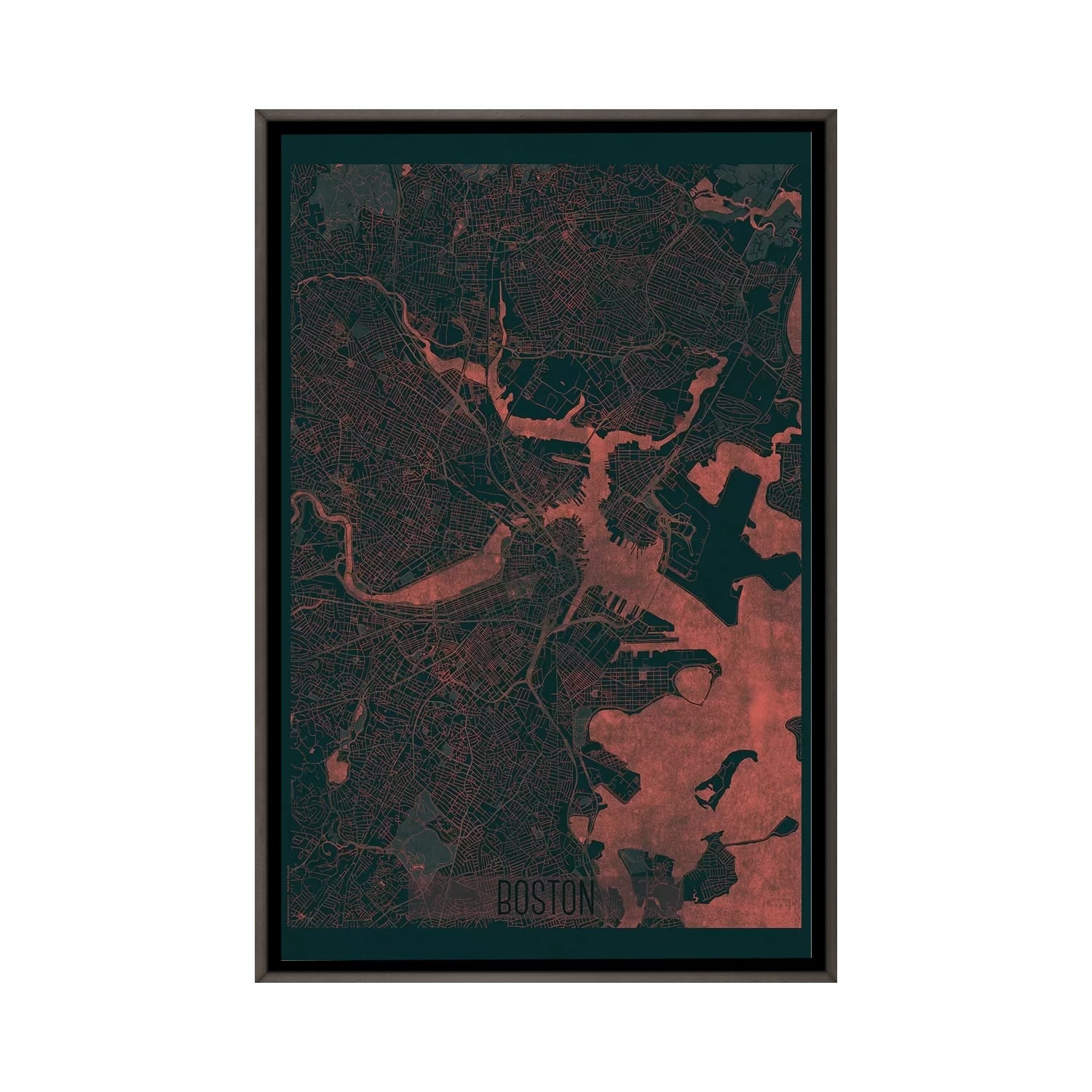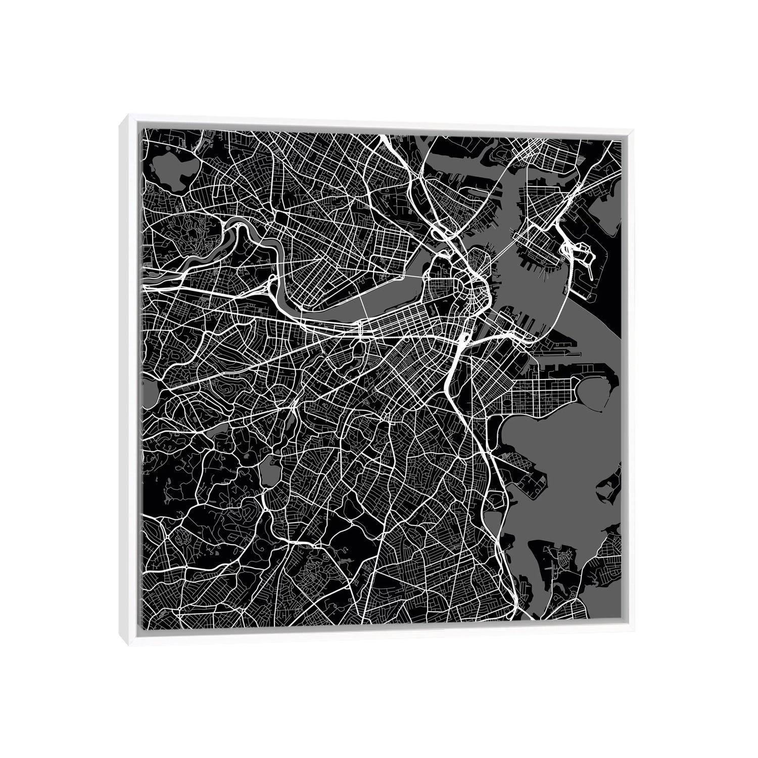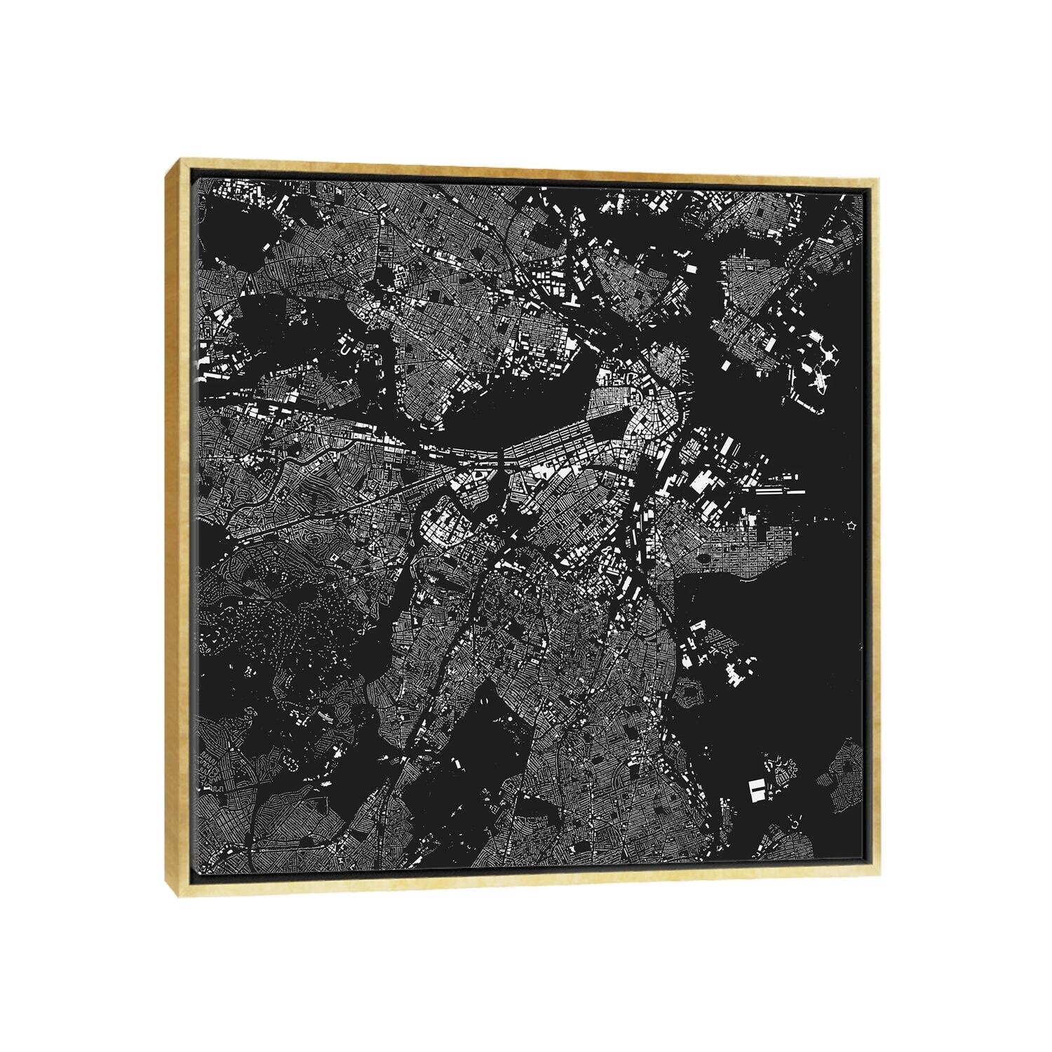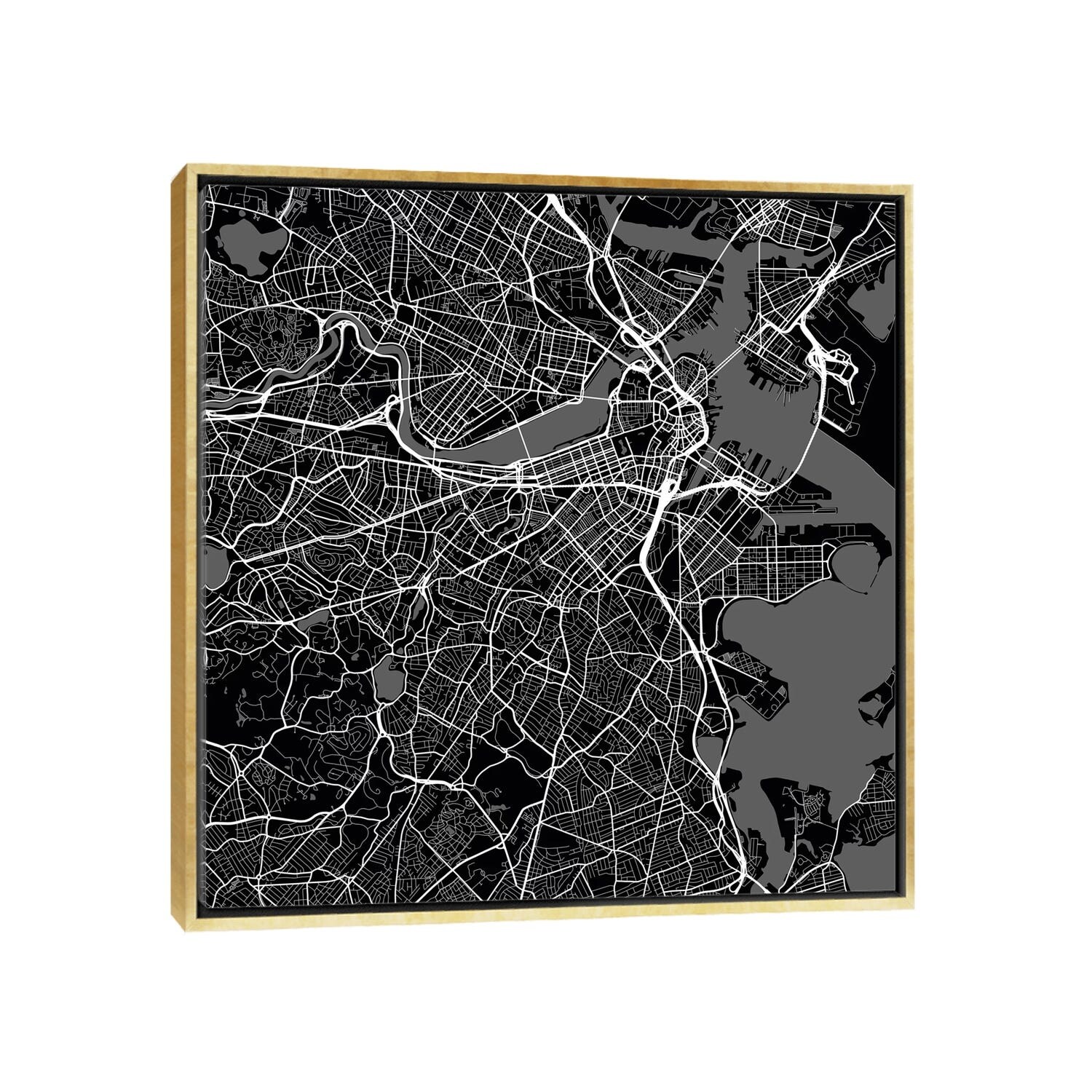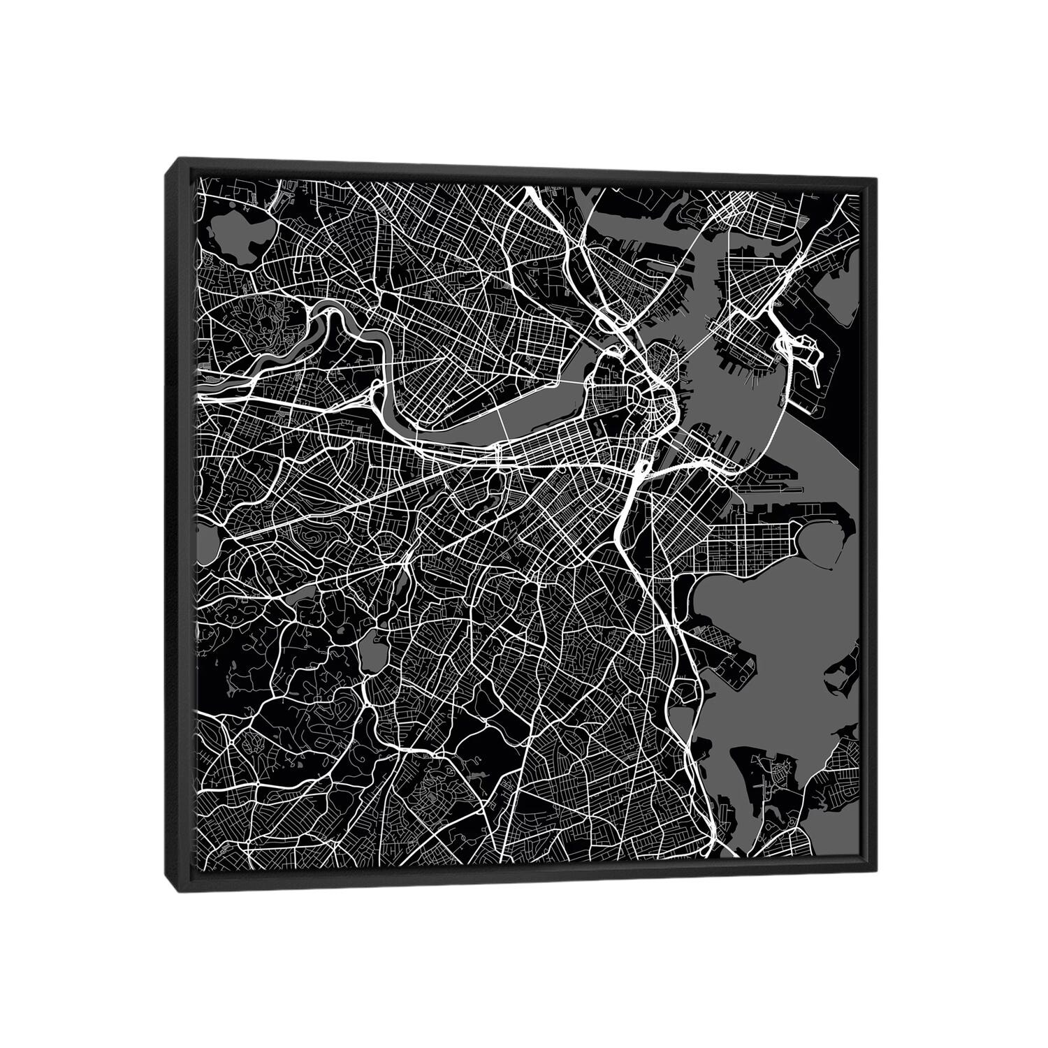 iCanvas "Boston Urban Map (Black)" by Urbanmap Framed Canvas Print