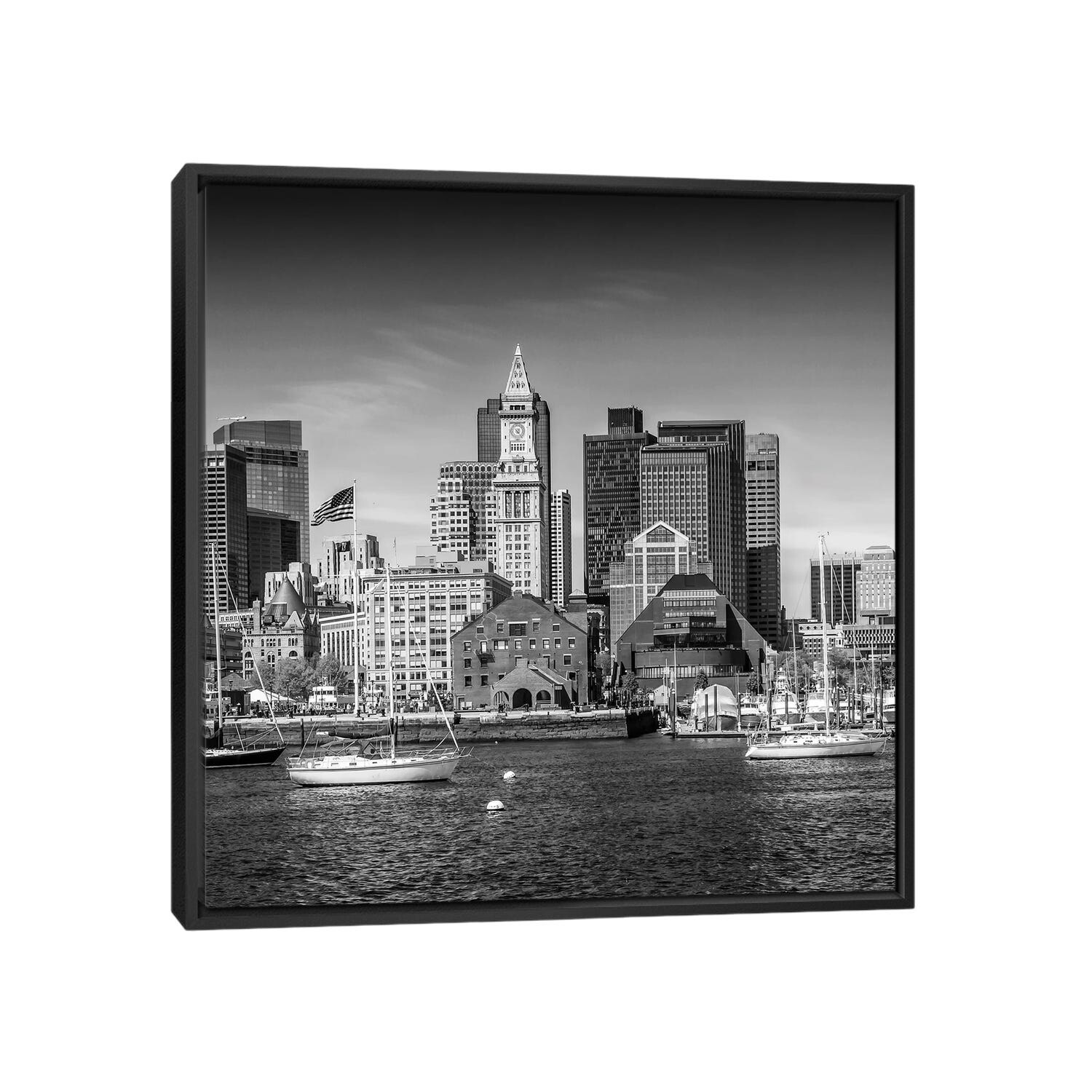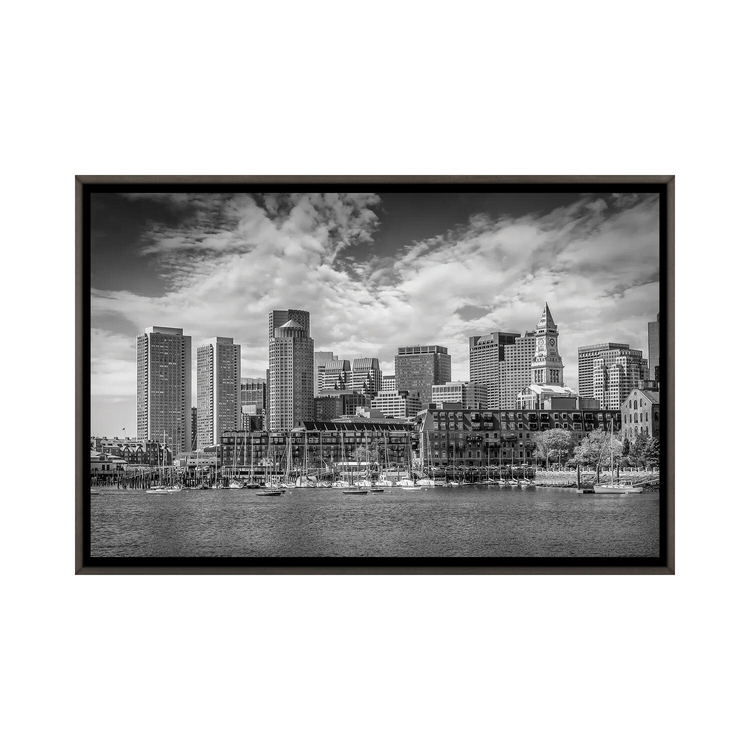 iCanvas "Boston Skyline North End & Financial District Monochrome" by Melanie Viola Framed