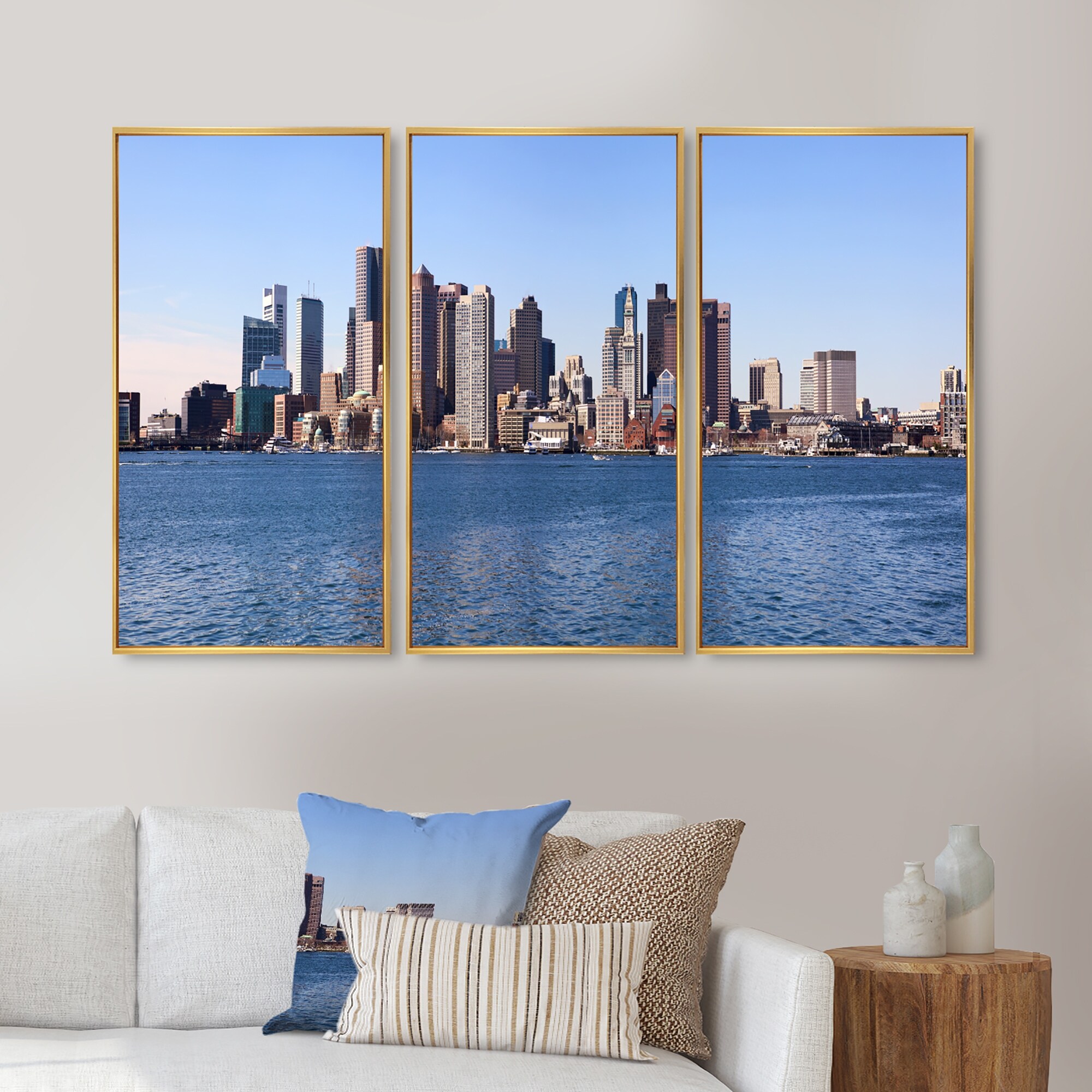 Designart "Boston Skyline Panorama" Landscape Framed Canvas Wall Art Print Set of 3 - 4 Colors of Frames