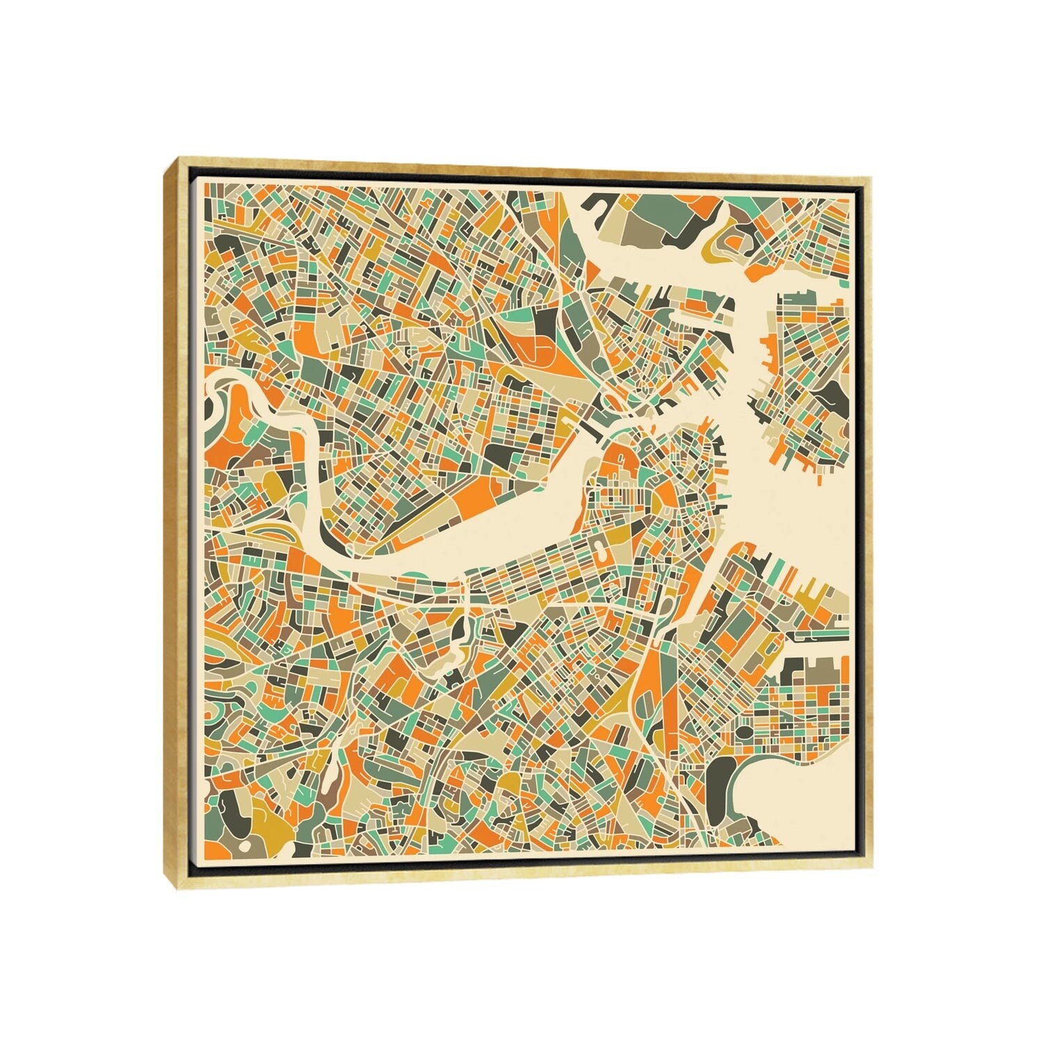 iCanvas "Abstract City Map of Boston" by Jazzberry Blue Framed Canvas Print