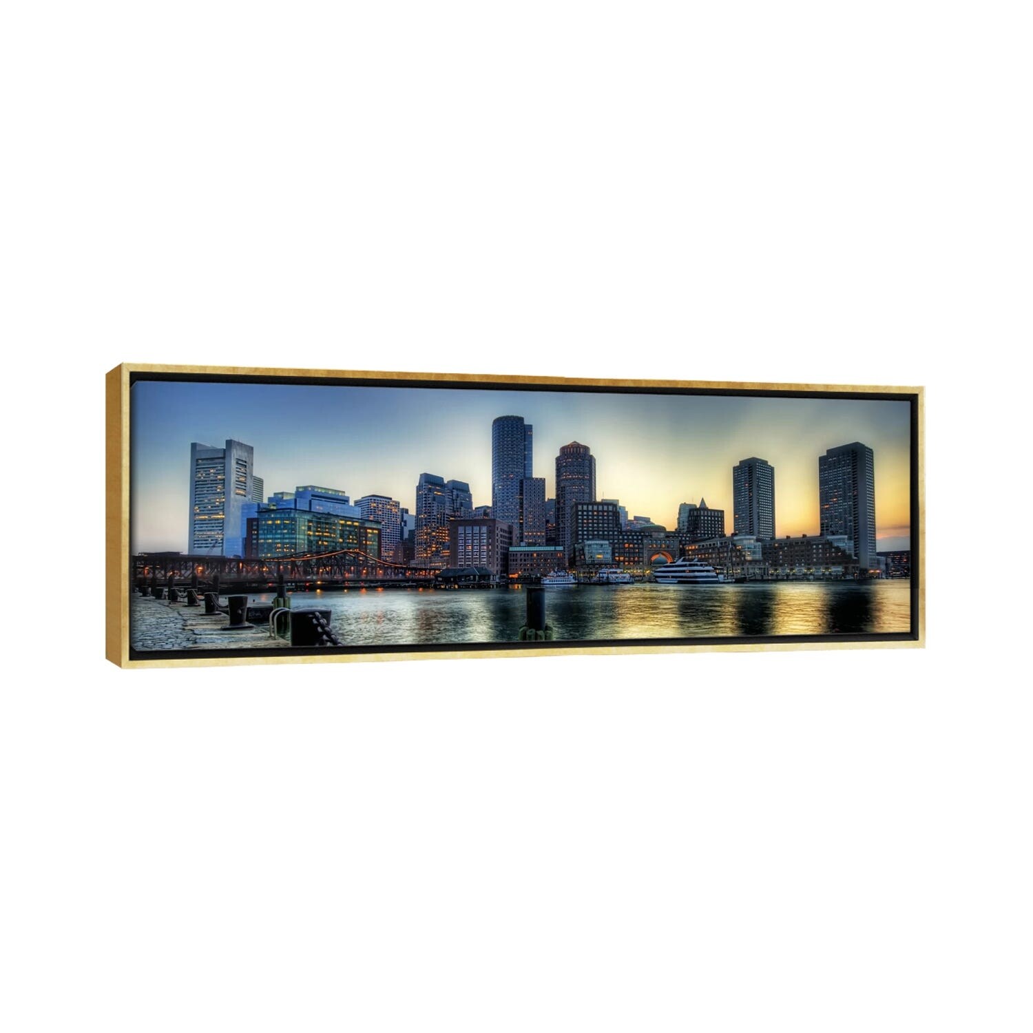 iCanvas "Boston Panoramic Skyline Cityscape (Sunset)" by Unknown Artist Framed Canvas Print