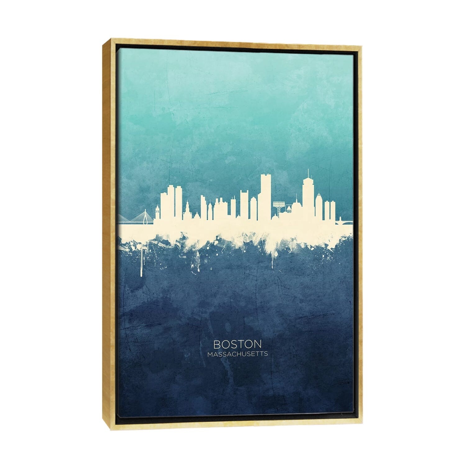 iCanvas "Boston Massachusetts Skyline Navy Cyan" by Michael Tompsett Framed Canvas Print
