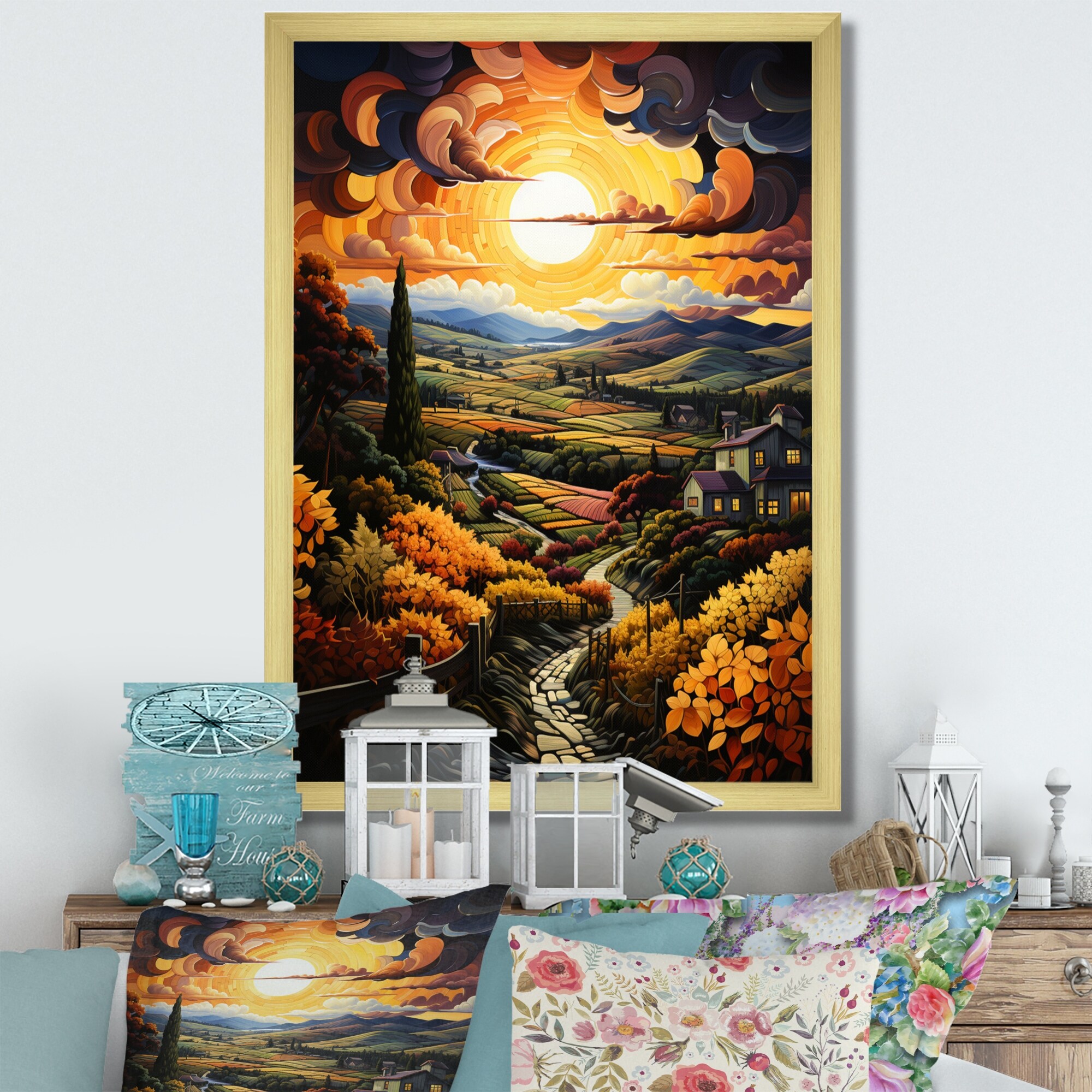 Designart "Countryside Bountiful Vineyard Patchwork II" Countryside Framed Wall Art Prints