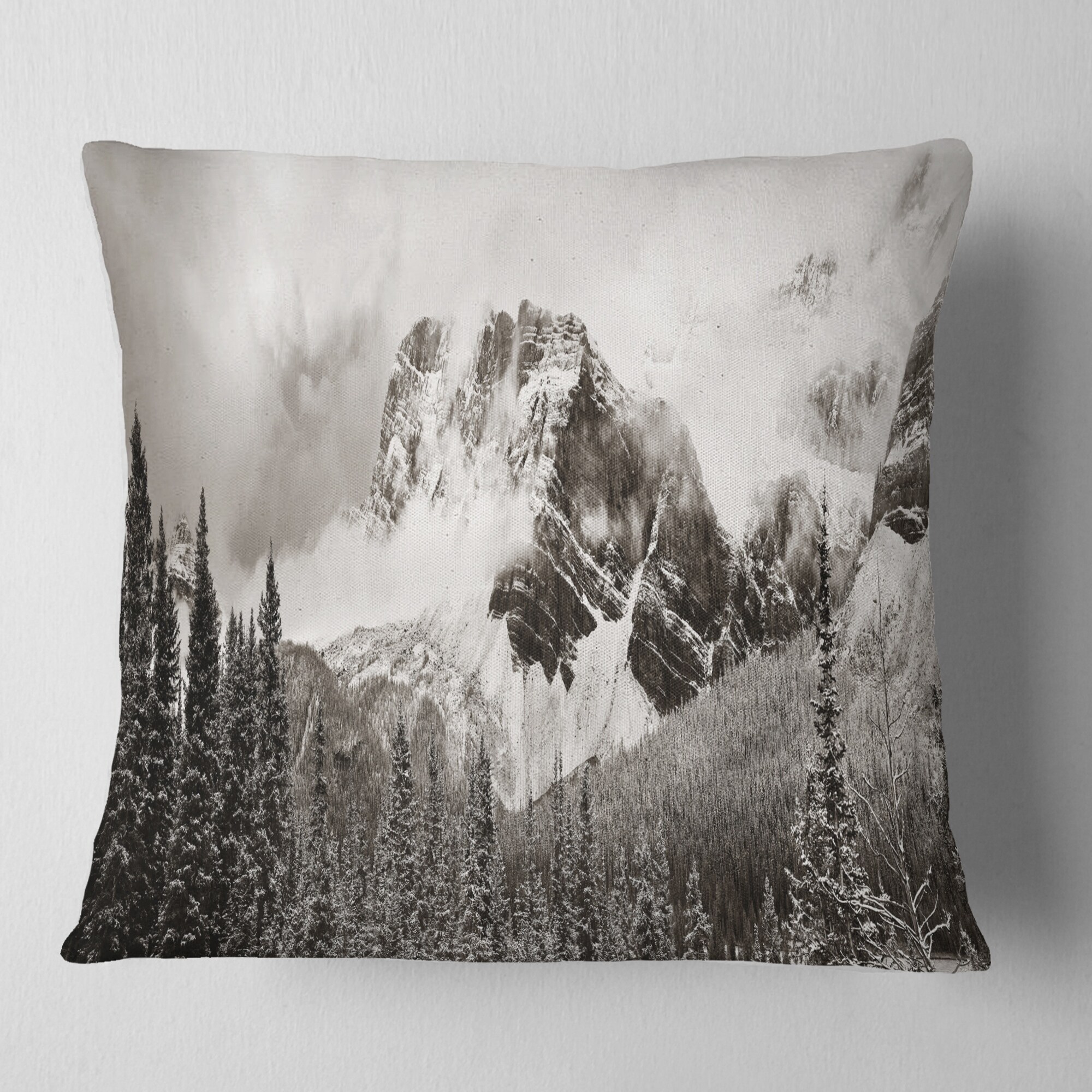 Designart 'Snow Capped Hills and Bow Lake' Landscape Printed Throw Pillow