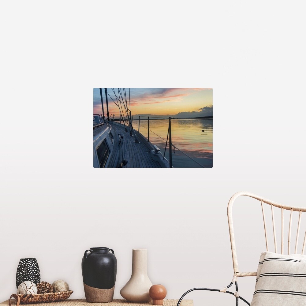 "Bow of 62 ft sailboat at sunset" Poster Print - Multi