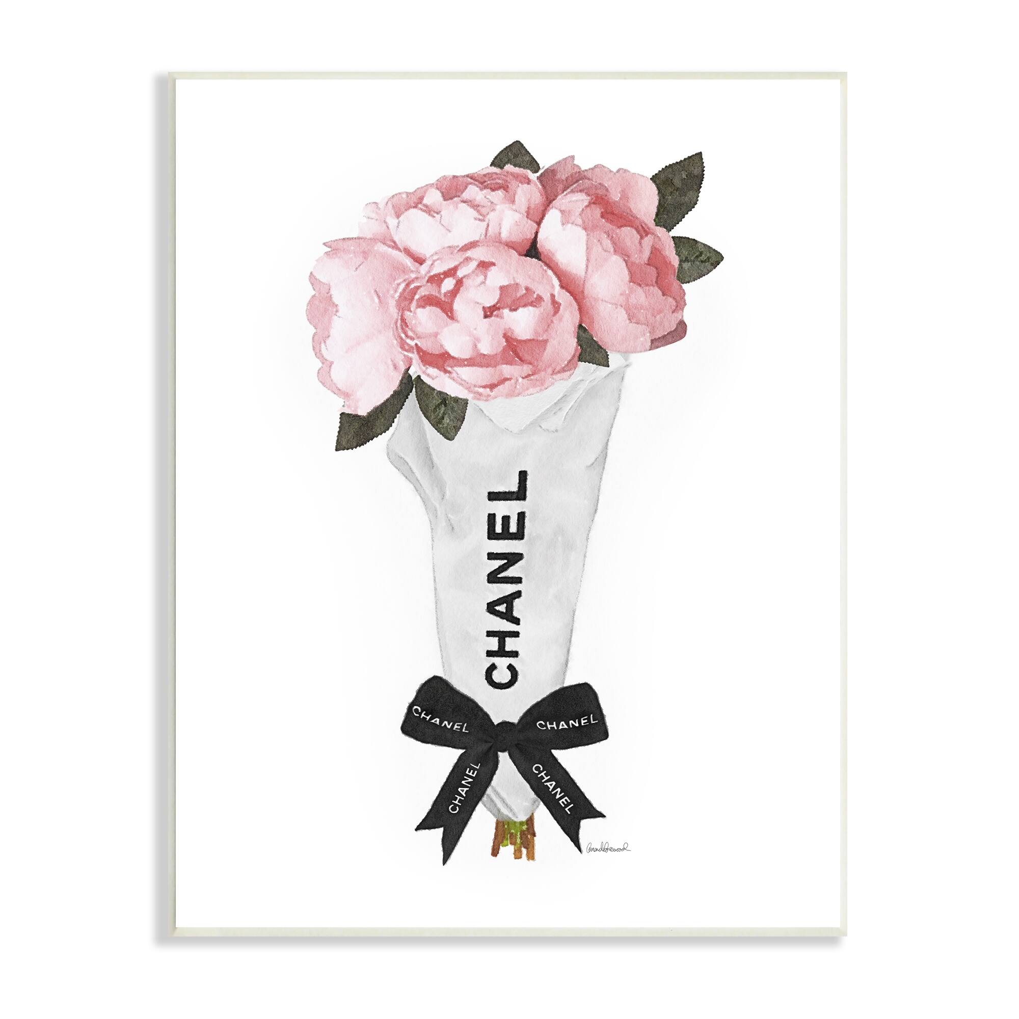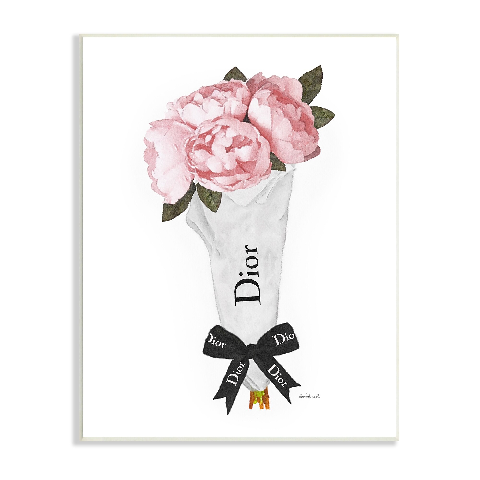Stupell Industries Pink Peonies Flower Bouquet Glam Fashion Bow Wood Wall Art