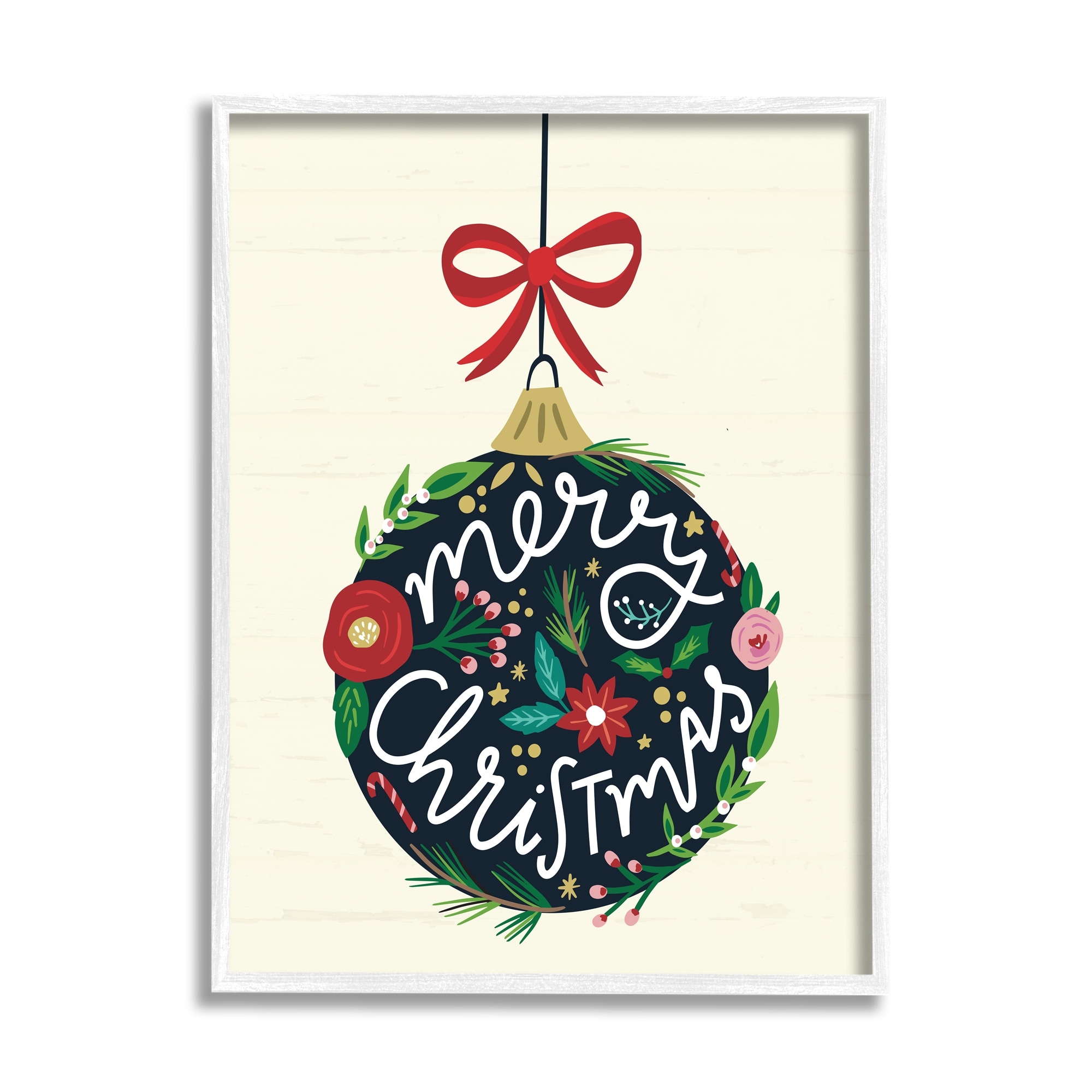 Stupell Industries Merry Christmas Hanging Botanical Ornament Red Bow Framed Wall Art, Design by Louise Allen - Multi