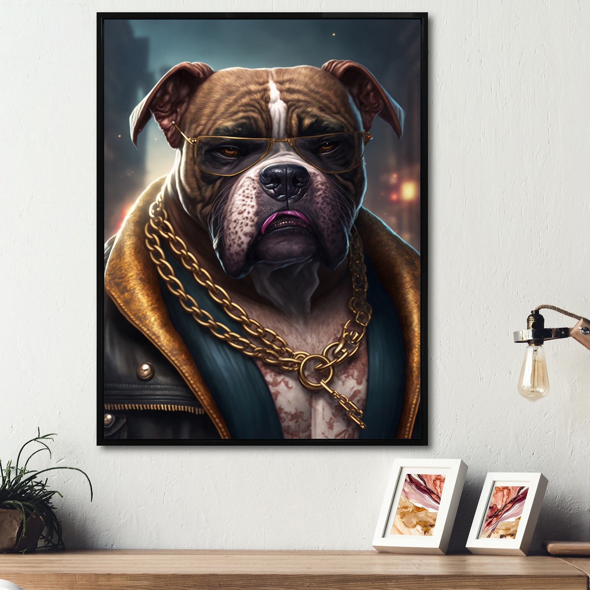Designart "Boxer Gangster in NYC I" Animals Framed Canvas Art Print