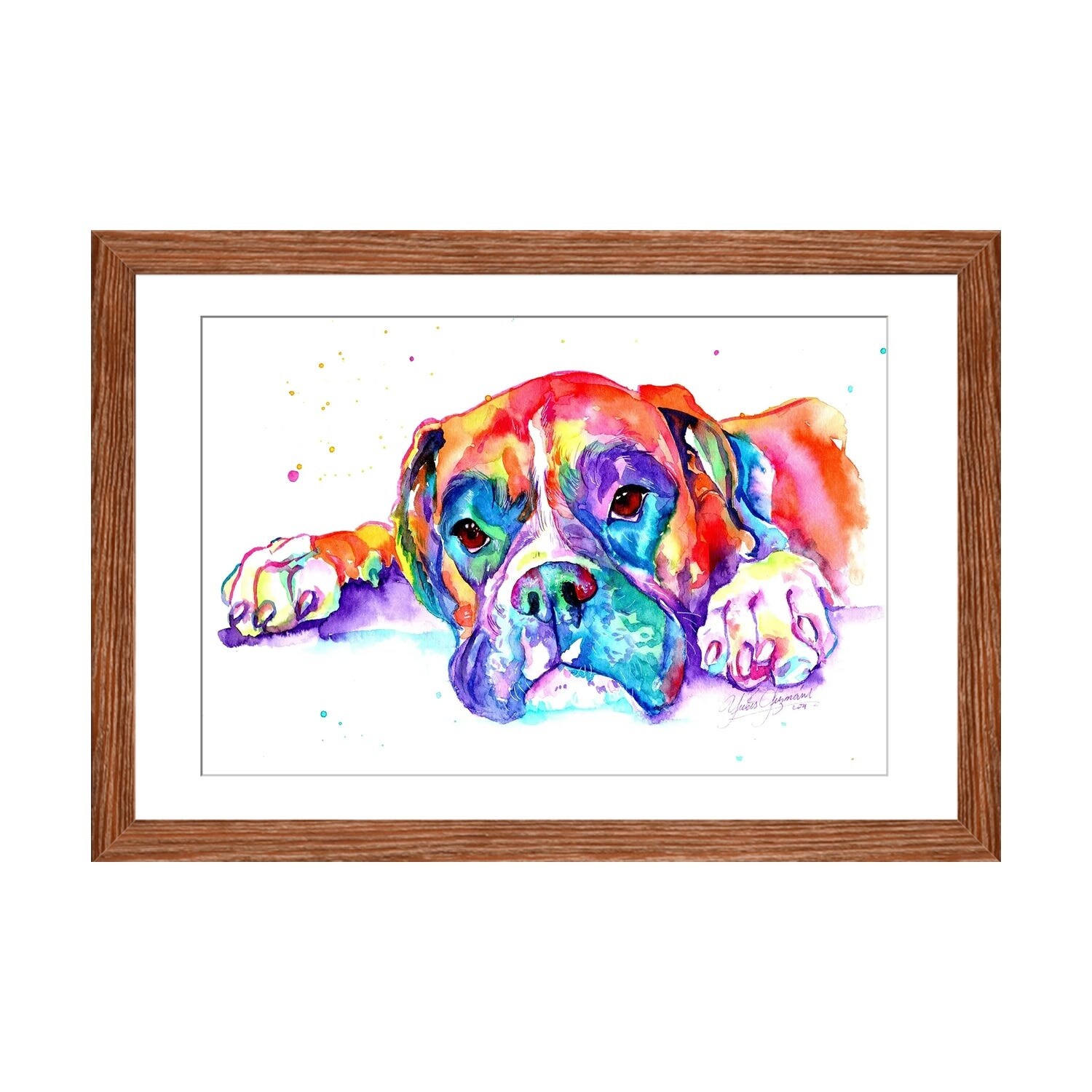 Boxer Portrait Print on Wood by George Dyachenko - Multi-Color