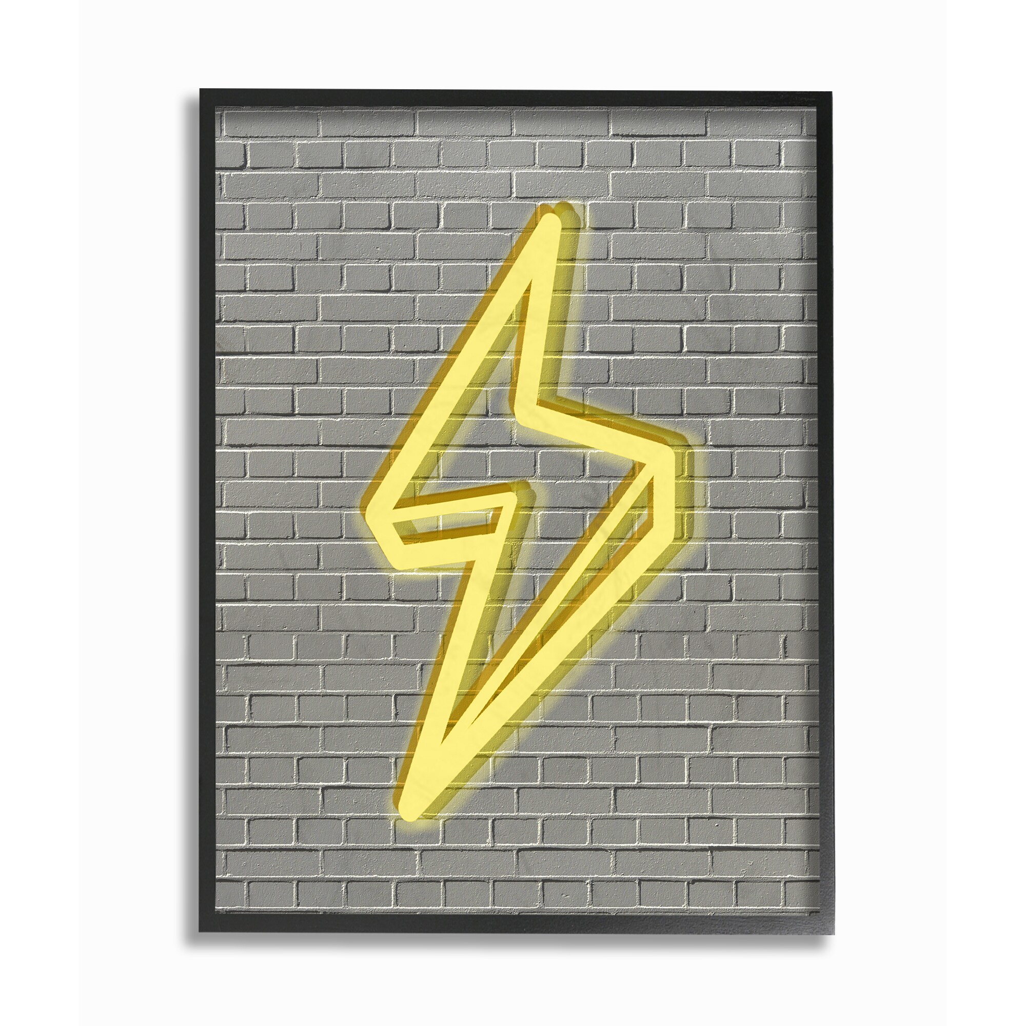 'Neon Lightning with Brick Background' Framed Giclee Texturized Art