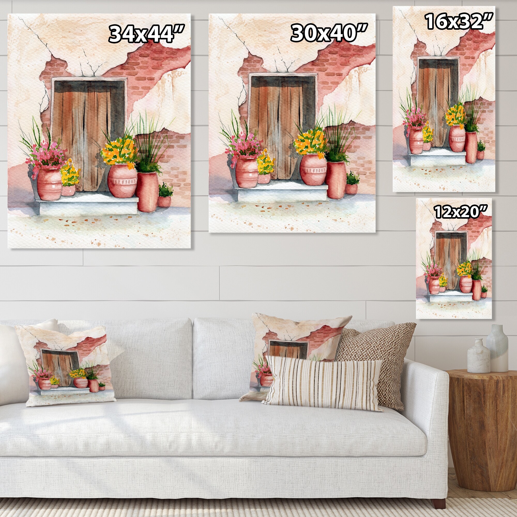 Designart "Old Wooden Door Brick Wall And Some Plants I" Vintage Canvas Wall Art Print