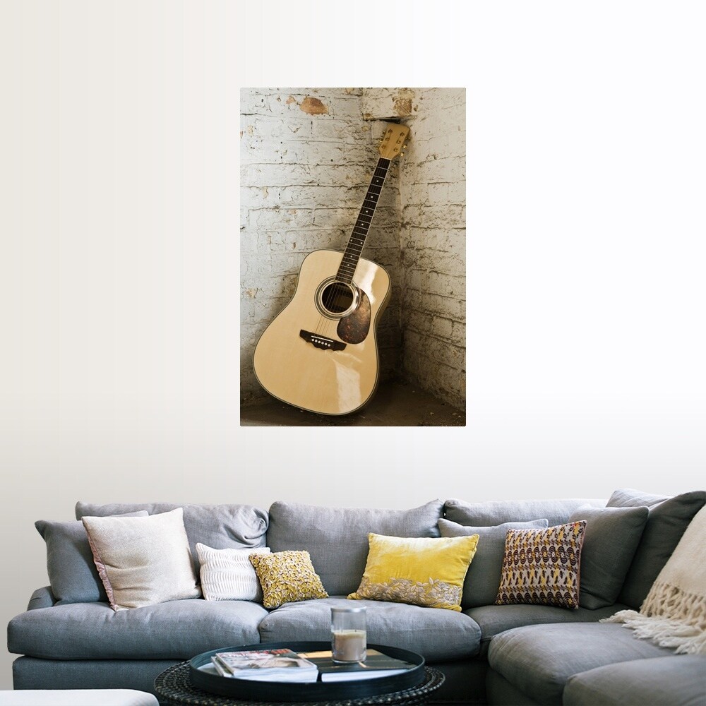 "Guitar leaning against brick wall" Poster Print - Multi