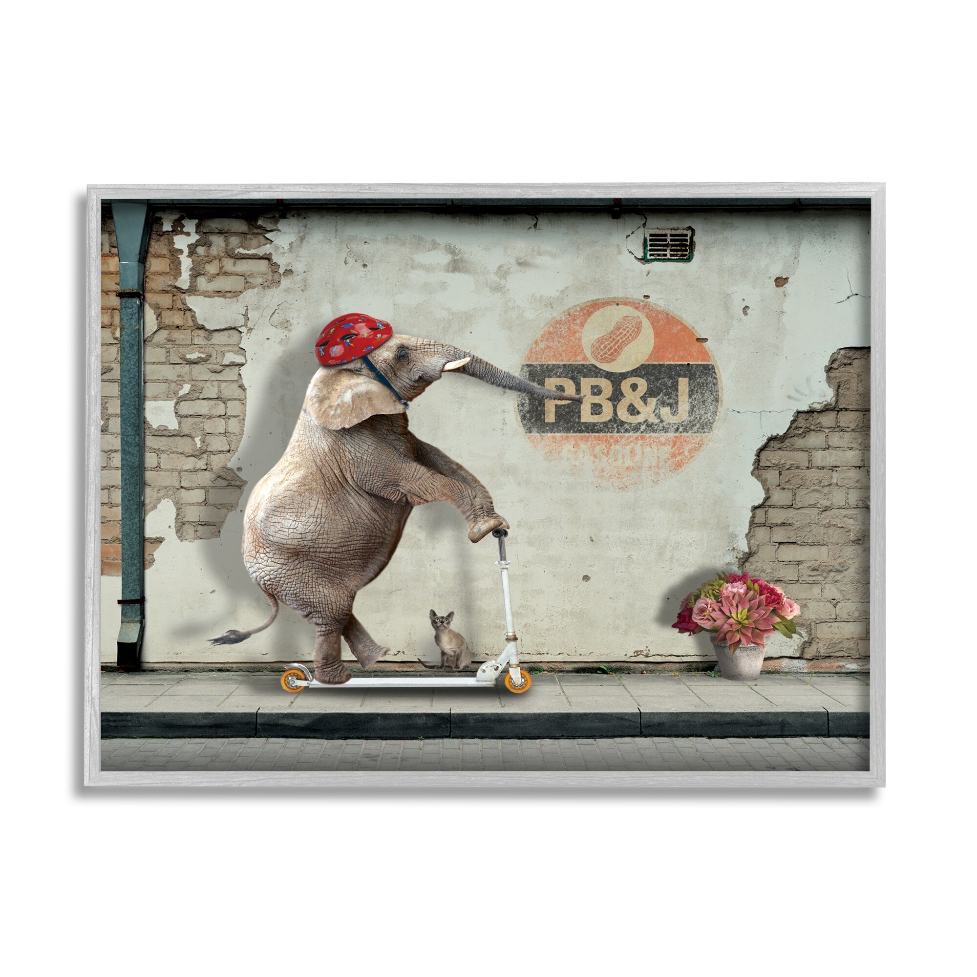 Stupell Industries Elephant Riding Scooter Old Brick City Streets Floater Frame, Design by Nobleworks