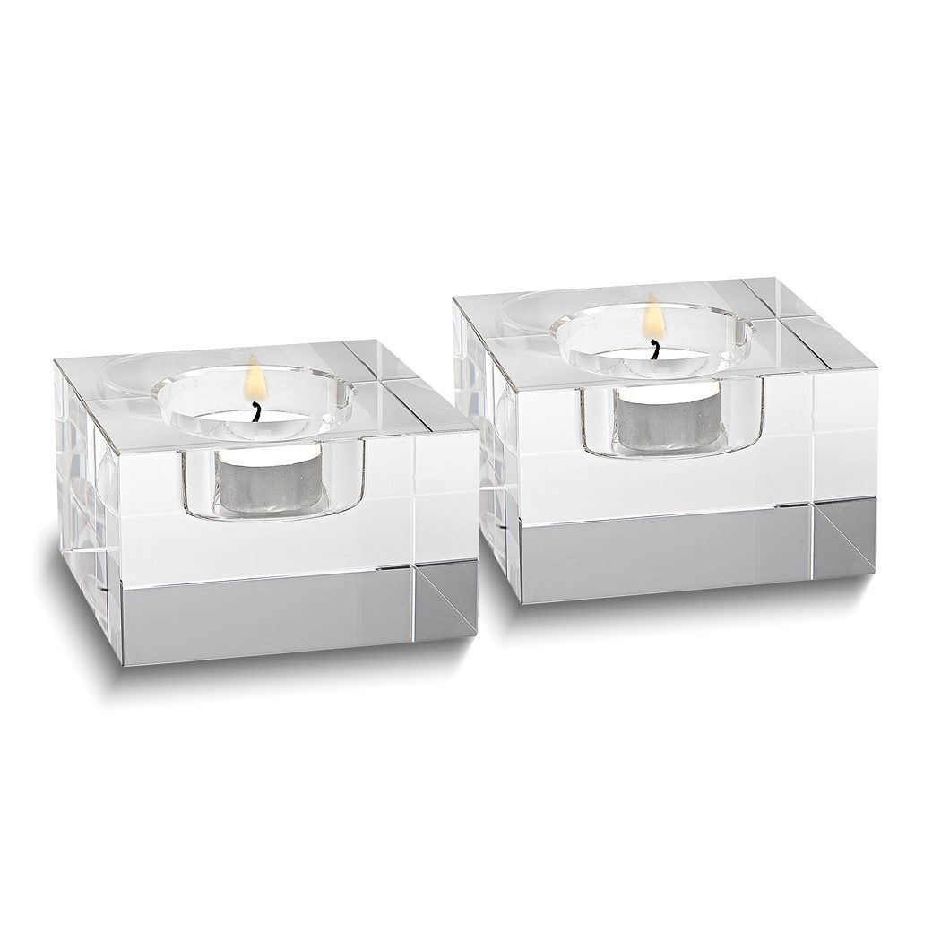 Curata Handcrafted Lead-Free Crystal Brick Set of 2 Tealight Candle Holders
