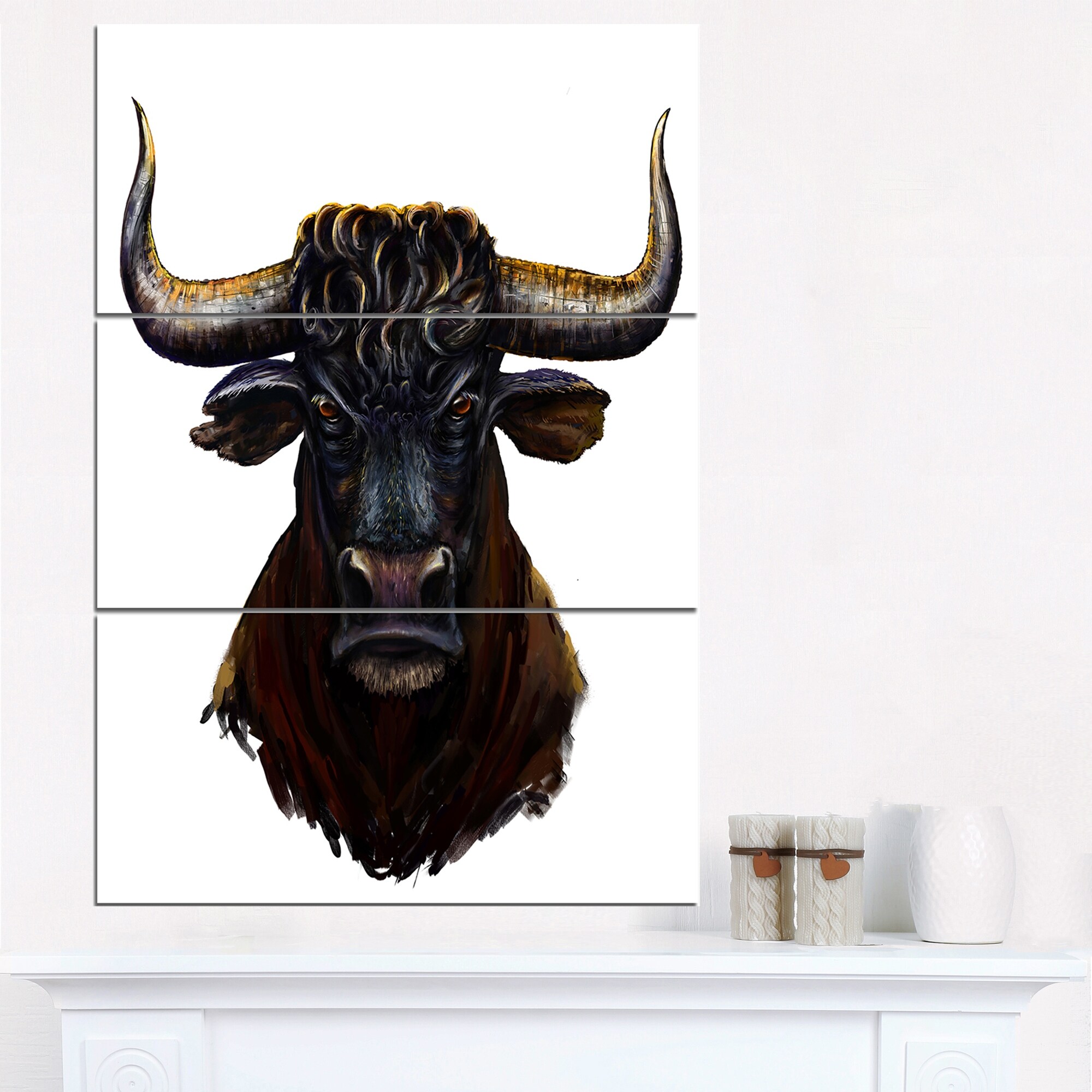 Canvas Triptych Highland Bull Horns by Sisi and Seb - 3 Piece Art Set