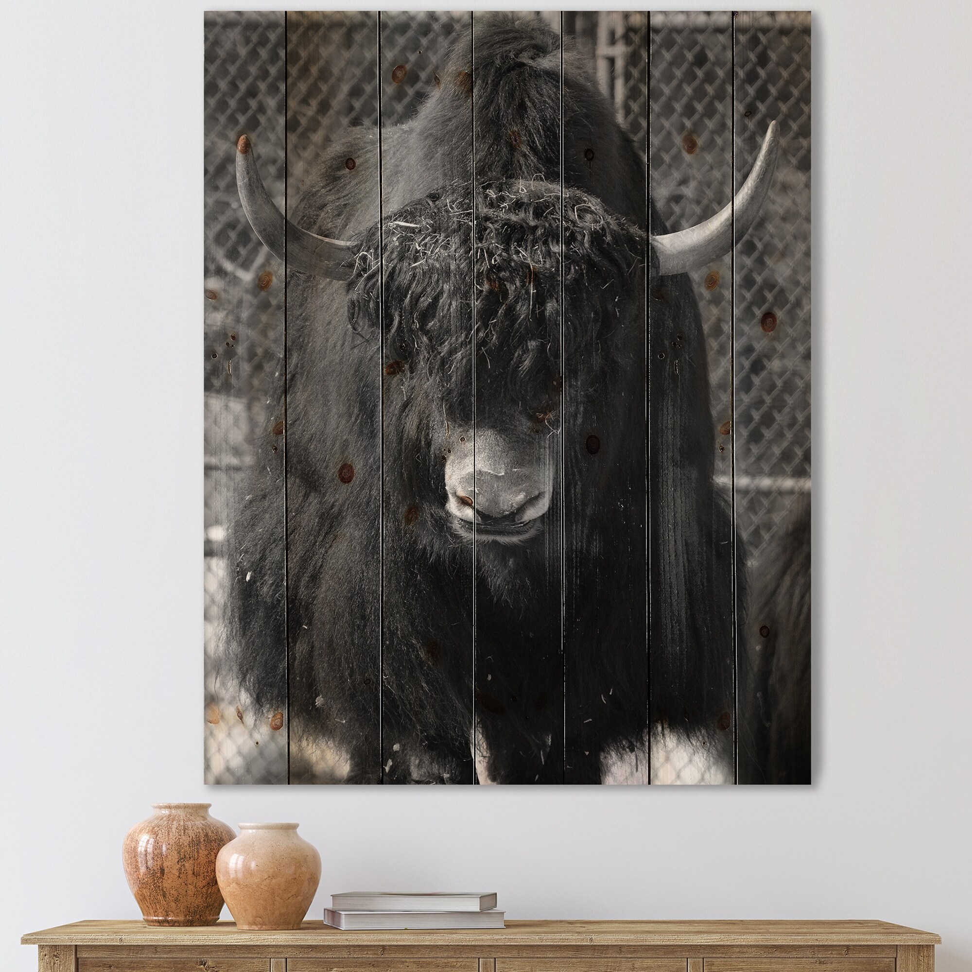 Designart 'Portrait Of Wild Bull in Winter Forest II' Farmhouse Print on Natural Pine Wood