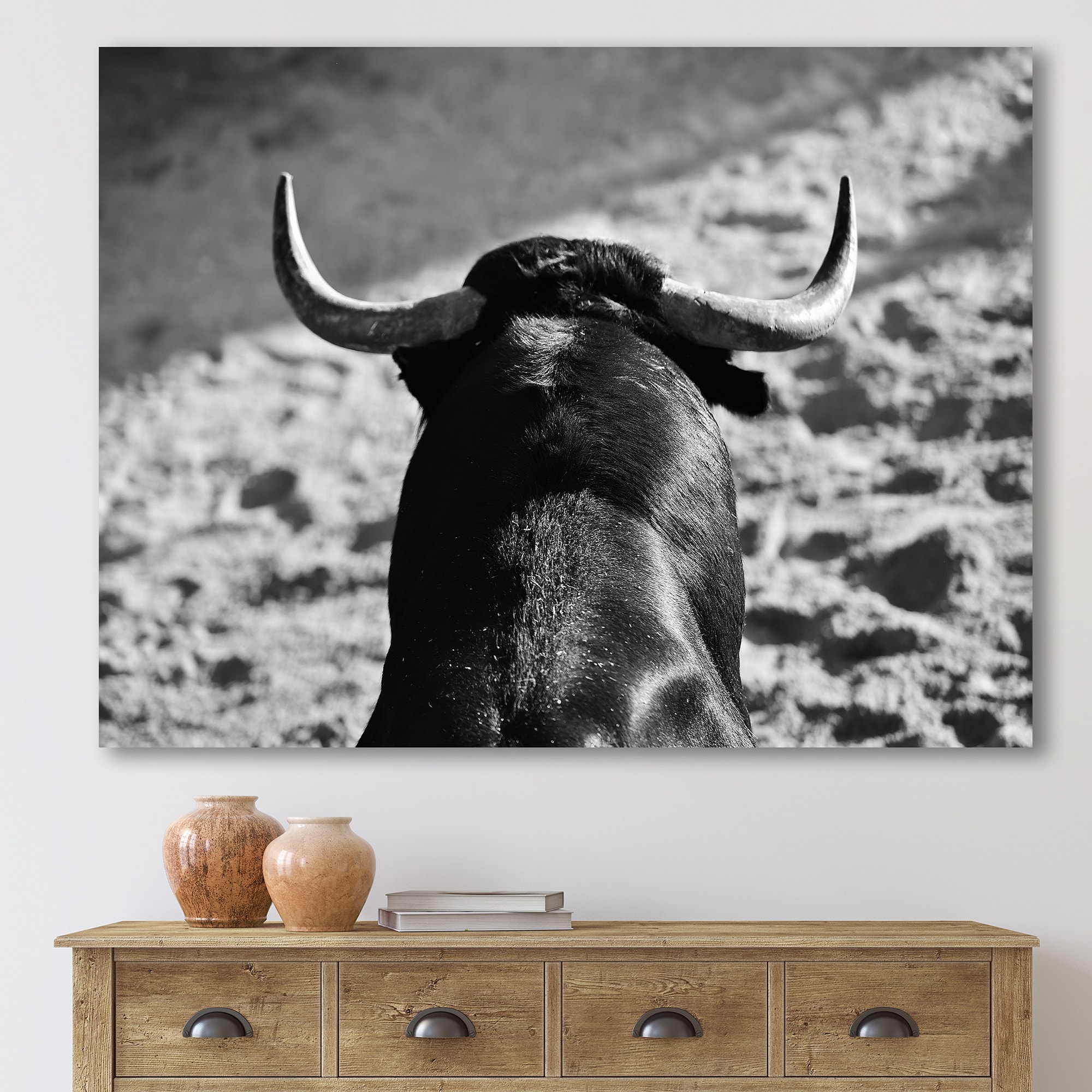 Designart "Monochrome Portrait of a Spanish Bull II" Farmhouse Canvas Wall Art Print