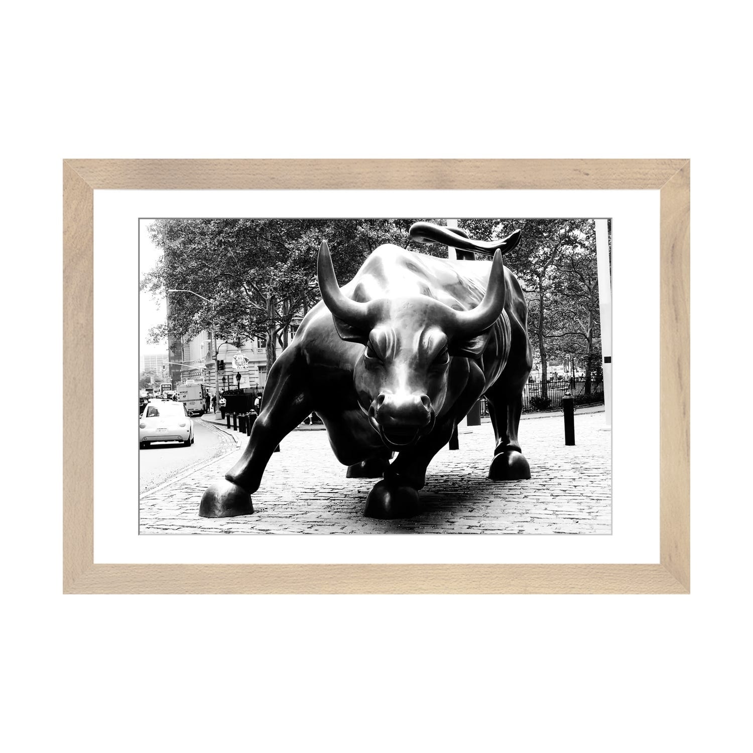 Wall Street Bull Black & White Print on Wood by Unknown Artist - Multi-Color