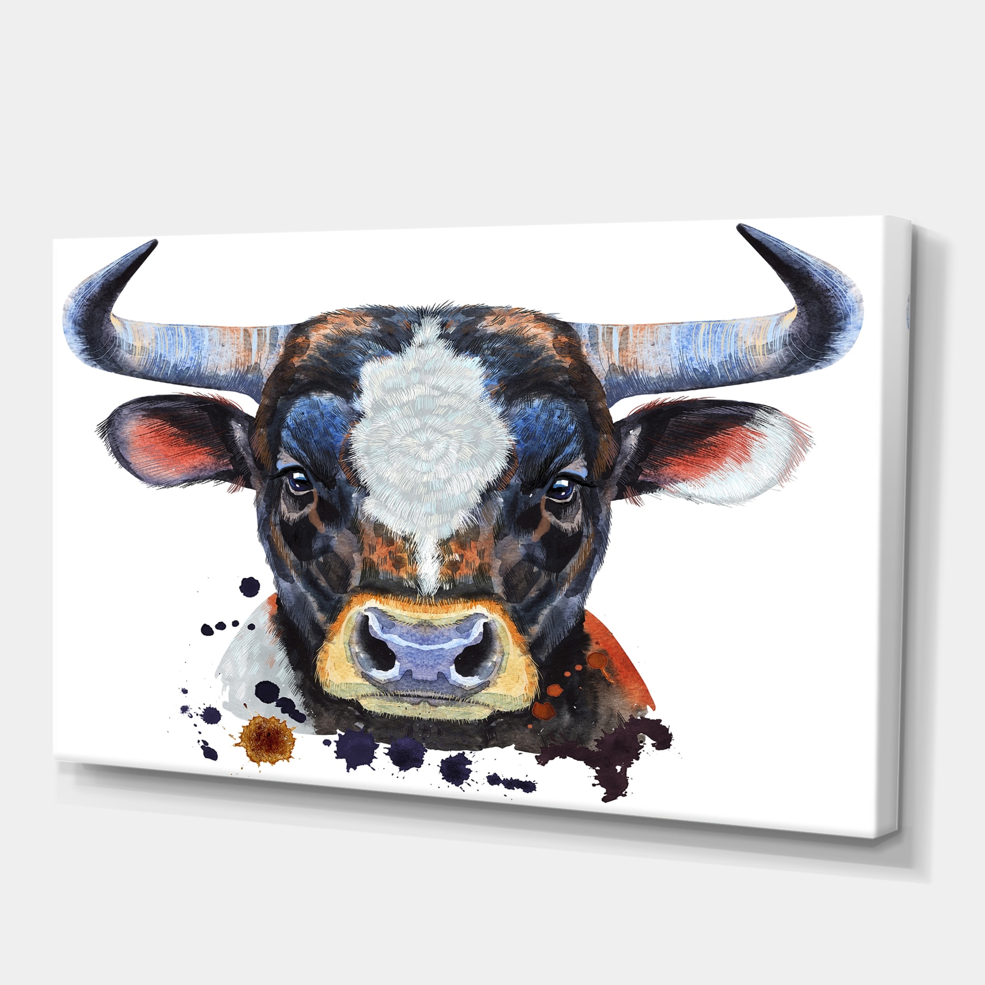 Designart "Watercolor Portrait of Bull III" Animals Canvas Wall Art Print