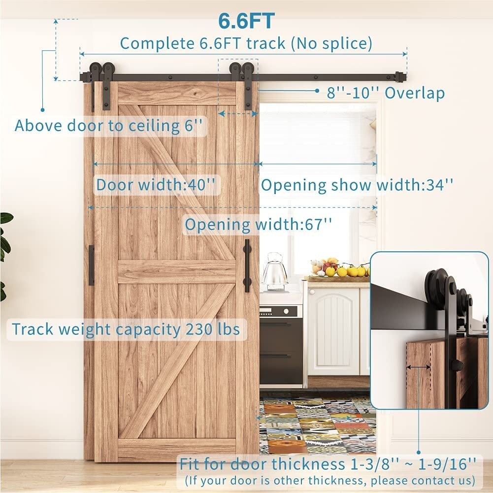 WINSOON 5-16FT Top Mount Bypass Sliding Barn Door Hardware Kit for Low Ceiling fit Double Doors