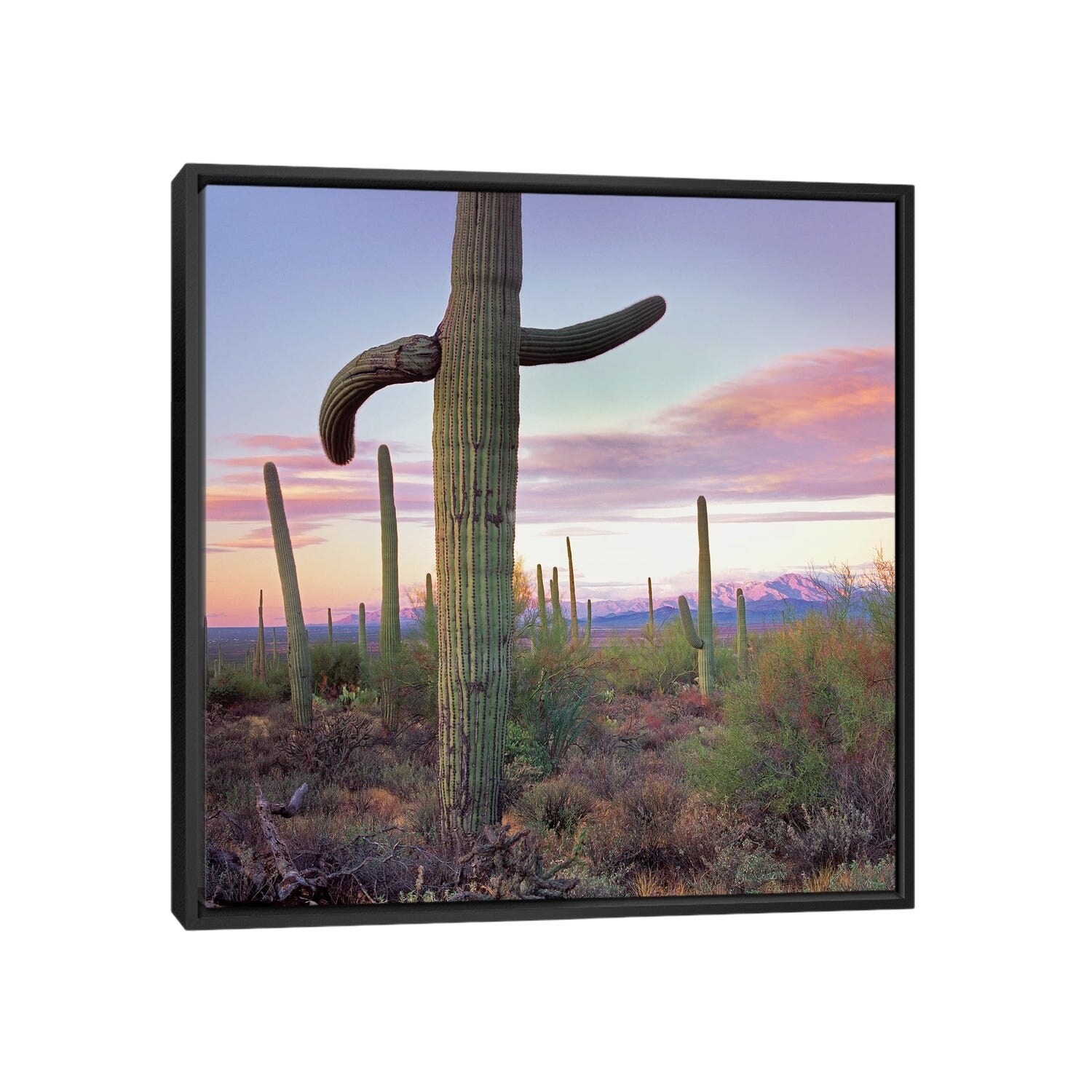 iCanvas "Saguaro Cactus Field With Sierrita Mountains in the Back, Saguaro Nat'l Park" by Tim Fitzharris Framed Canvas Print