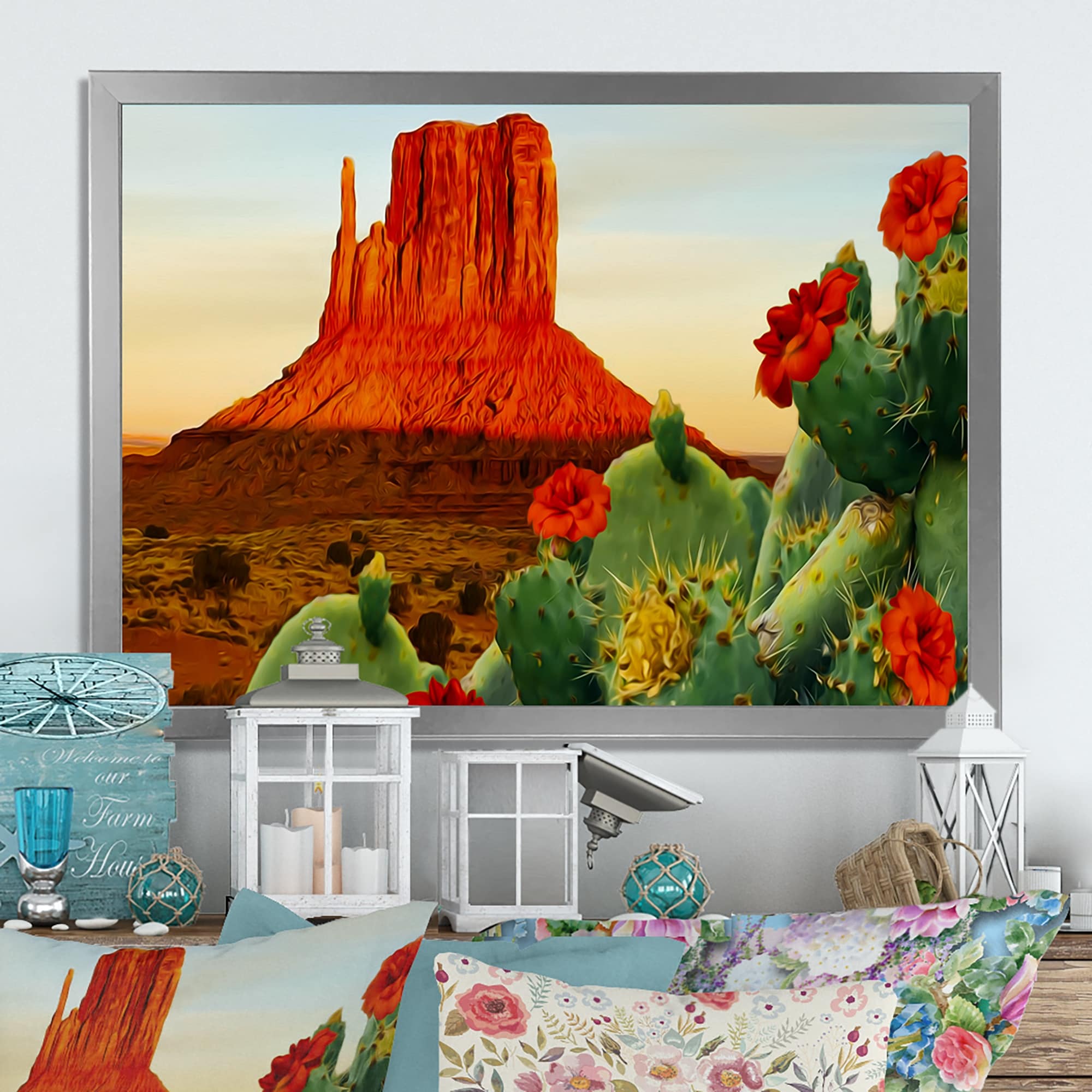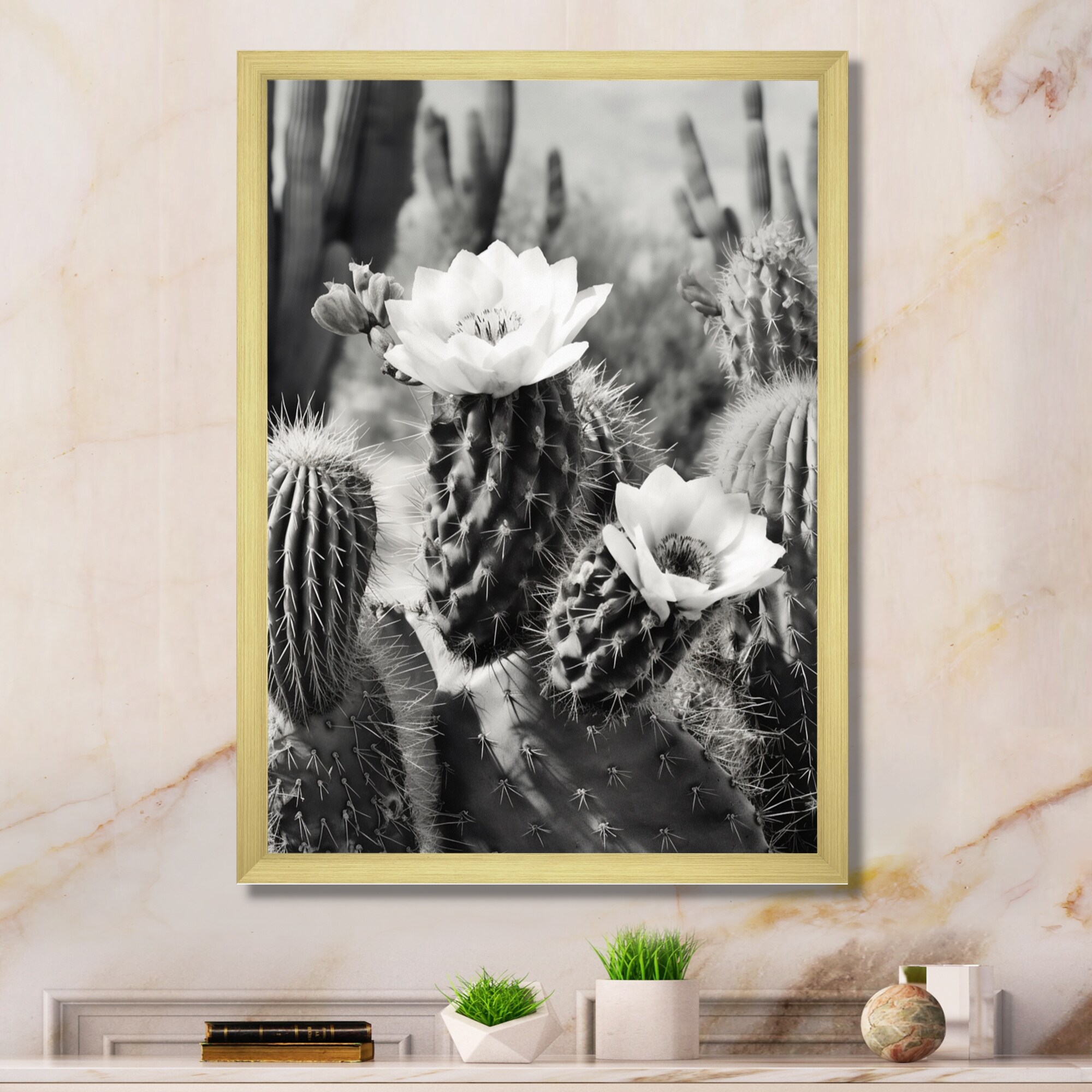 Designart "Blooming Cactus in Texas" Traditional Framed Wall Art