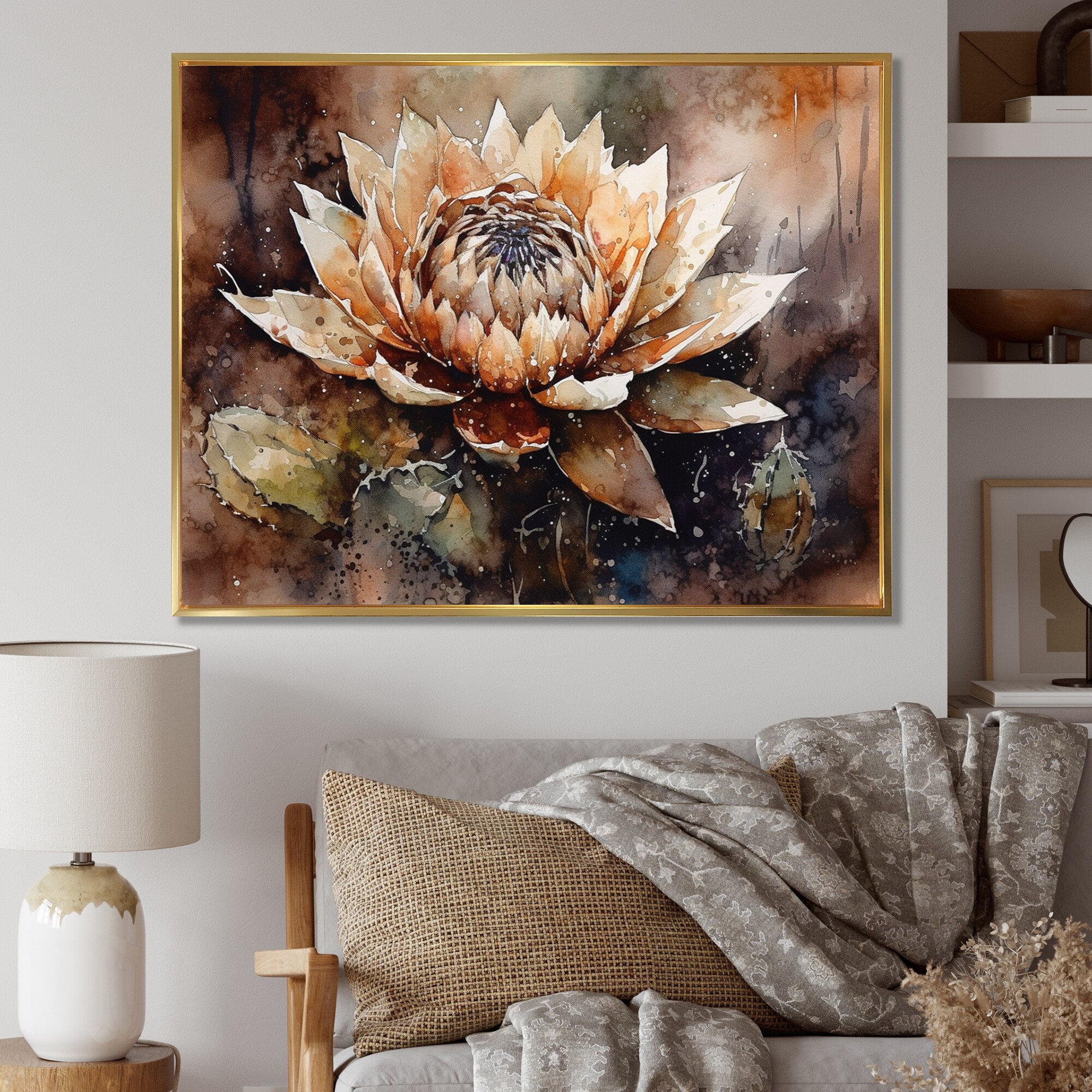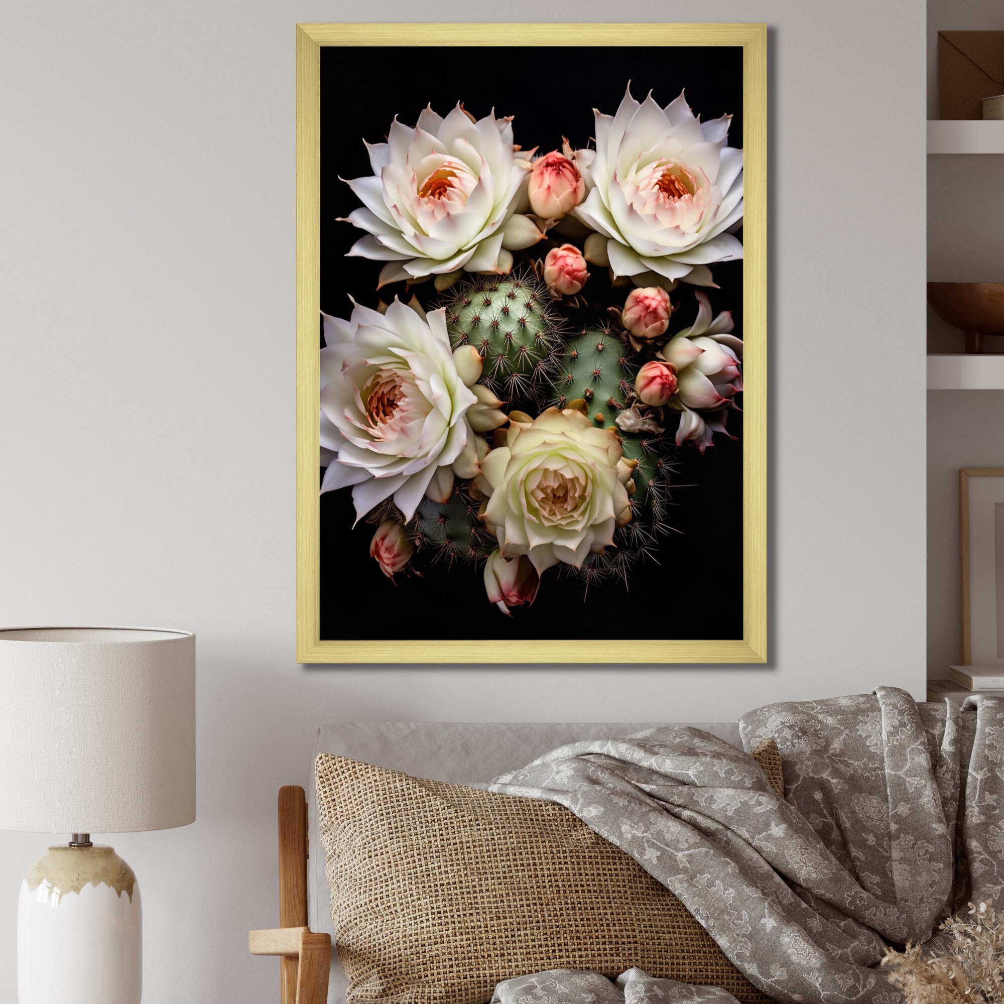Designart "Cream Brown Cactus Flower Ii" Floral Cactus Framed Wall Art for Living Room