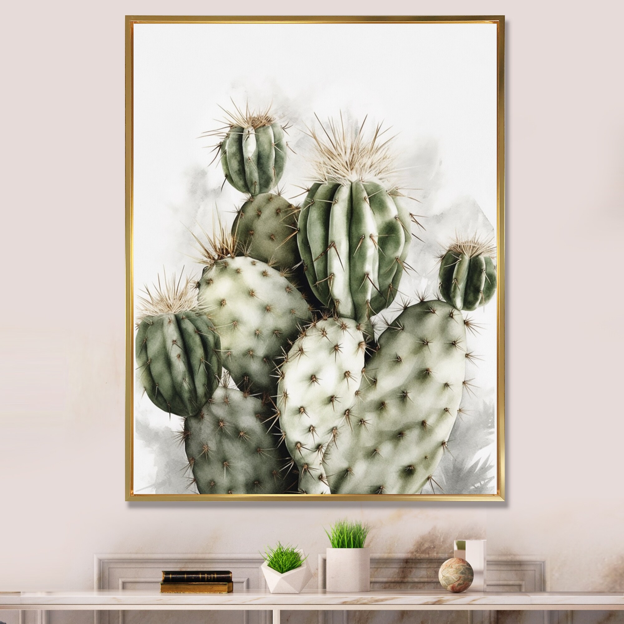 Designart "Green High Spiky Cactus" Traditional Framed Art Print