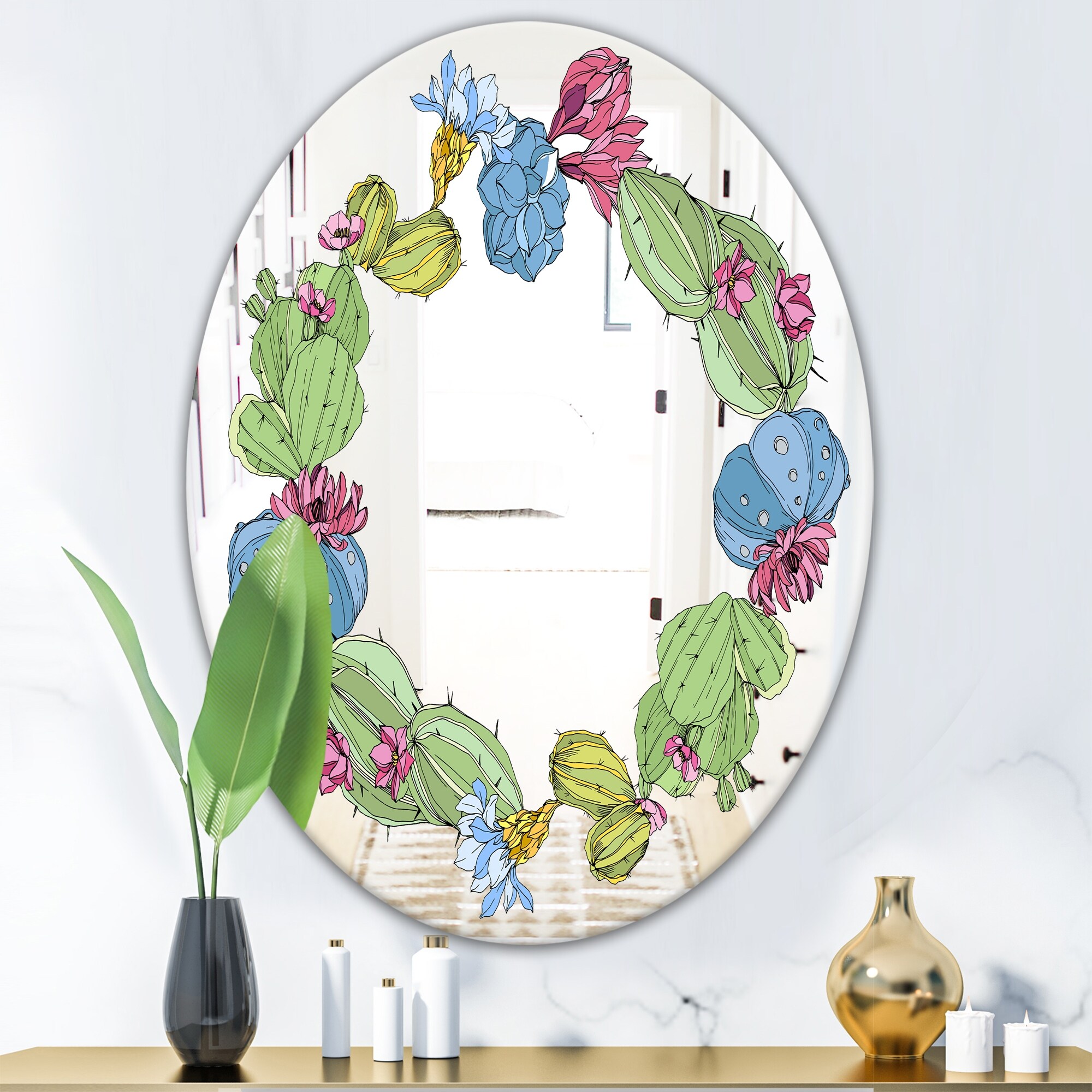 Designart 'Cactus 1' Farmhouse Mirror - Printed Oval or Round Wall Mirror