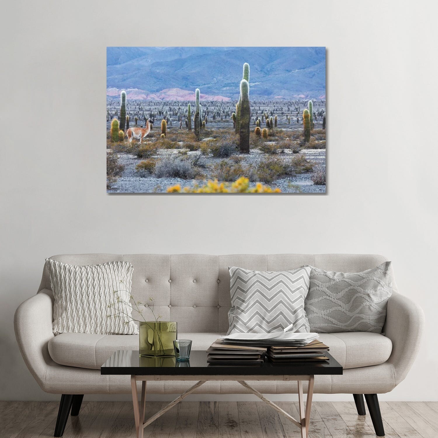 Designart "Yellow Green Cactus Scenery" Floral Cactus Canvas Wall Art