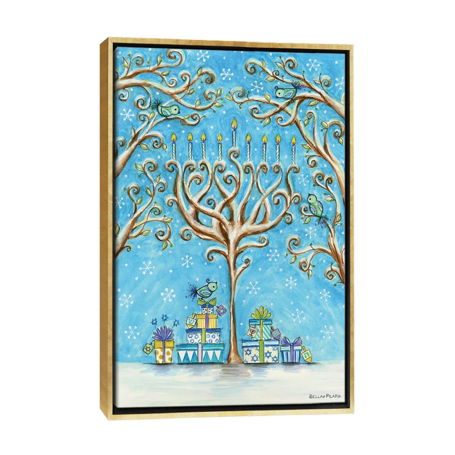 iCanvas "Snowy Chanukah Menorah Tree" by Bella Pilar Framed