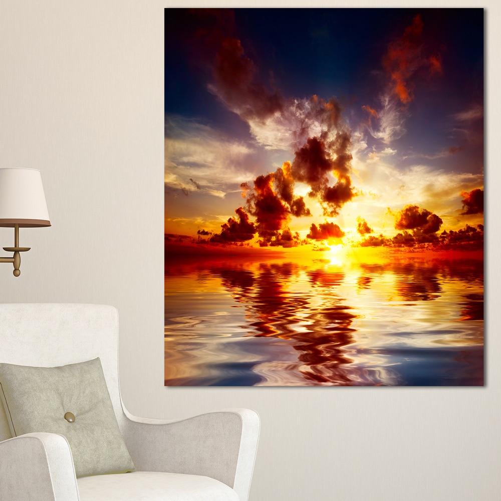 Designart "Caribbean Sunset with Beautiful Sky" Large Seashore Canvas Wall Art