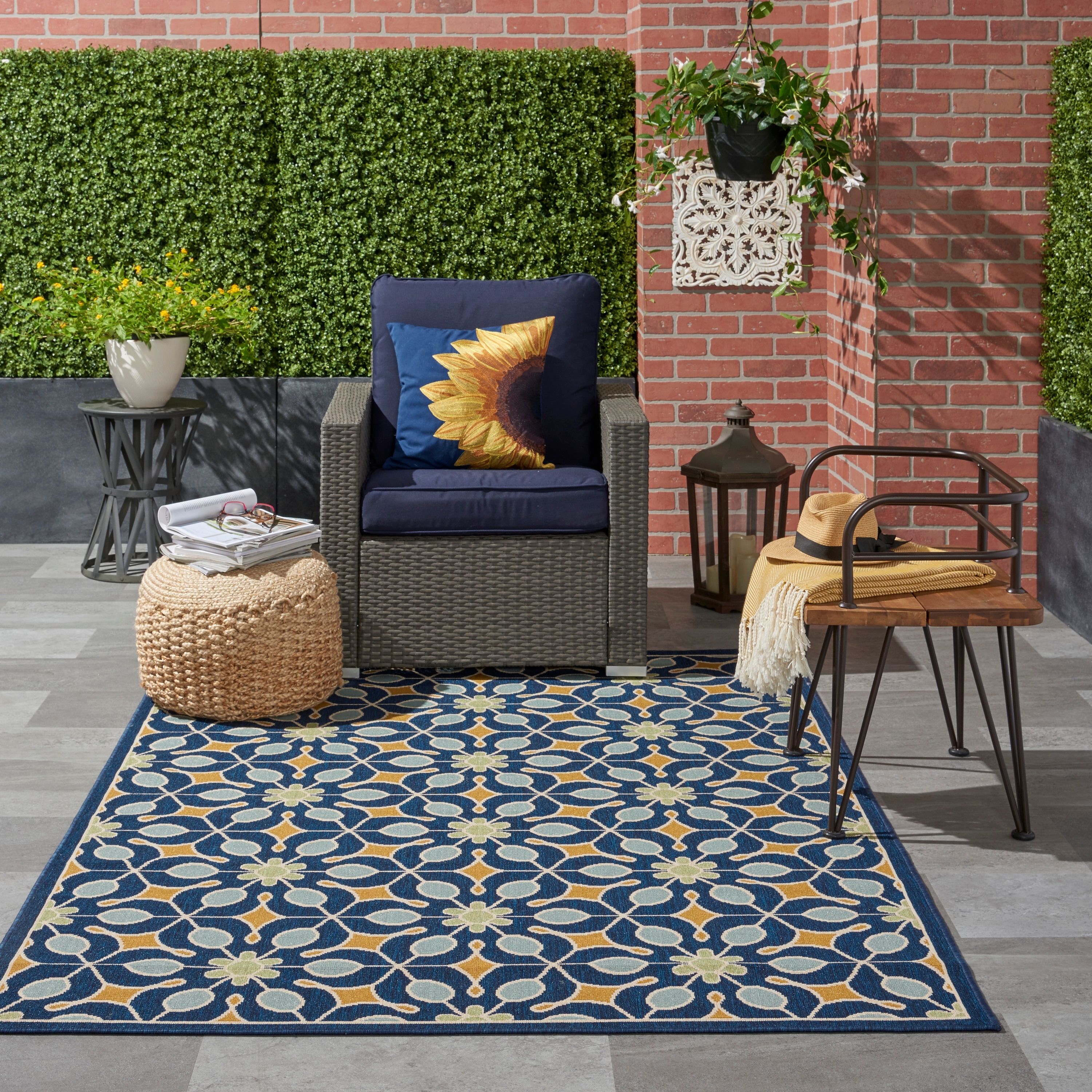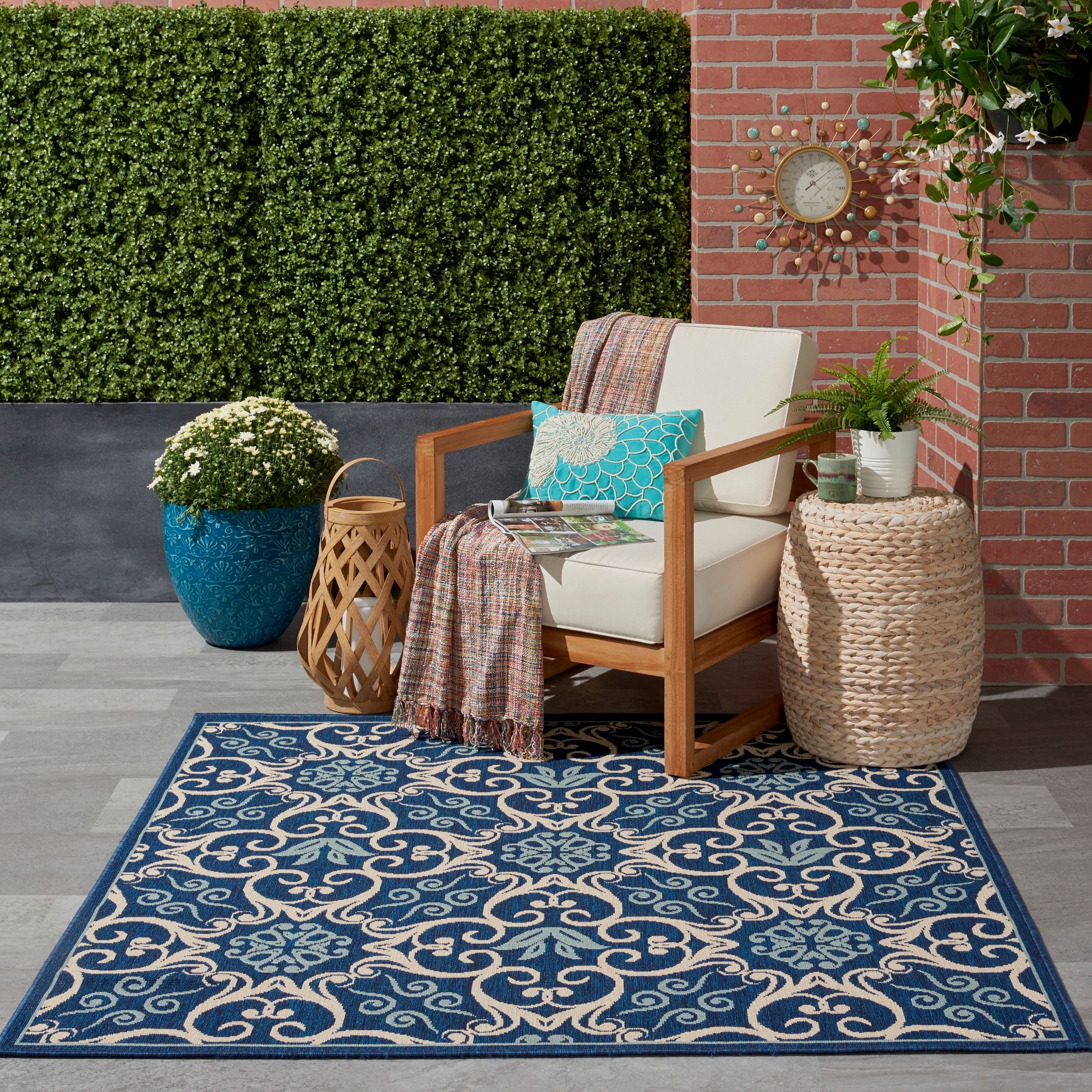 Nourison Caribbean Modern Trellis Medallion Indoor / Outdoor Area Rug