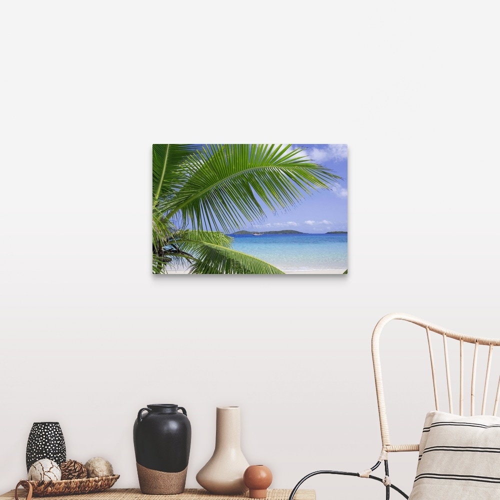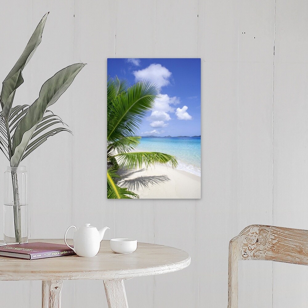 "Coconut palm tree, beach, and ocean in the Virgin Islands, Caribbean" Canvas Wall Art