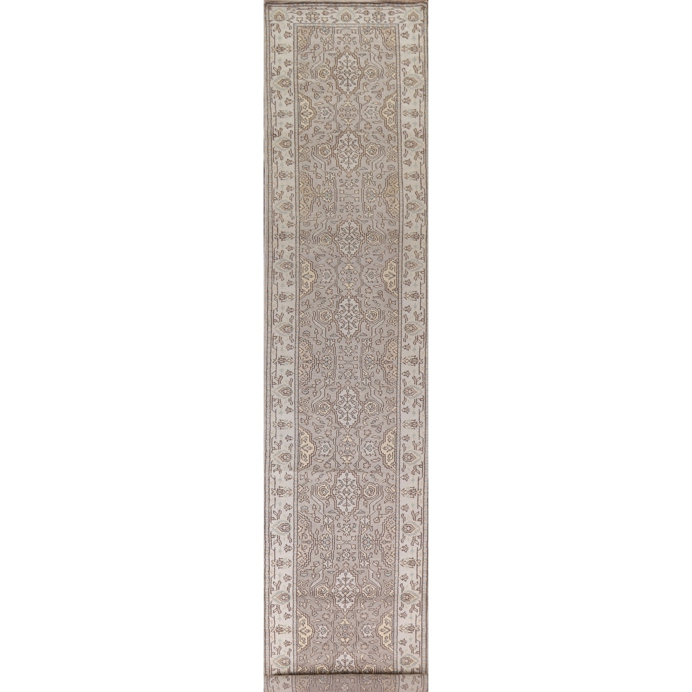 Grey All-Over Floral Oushak Runner Rug Hand-knotted Wool Carpet - 3'0" x 19'8"