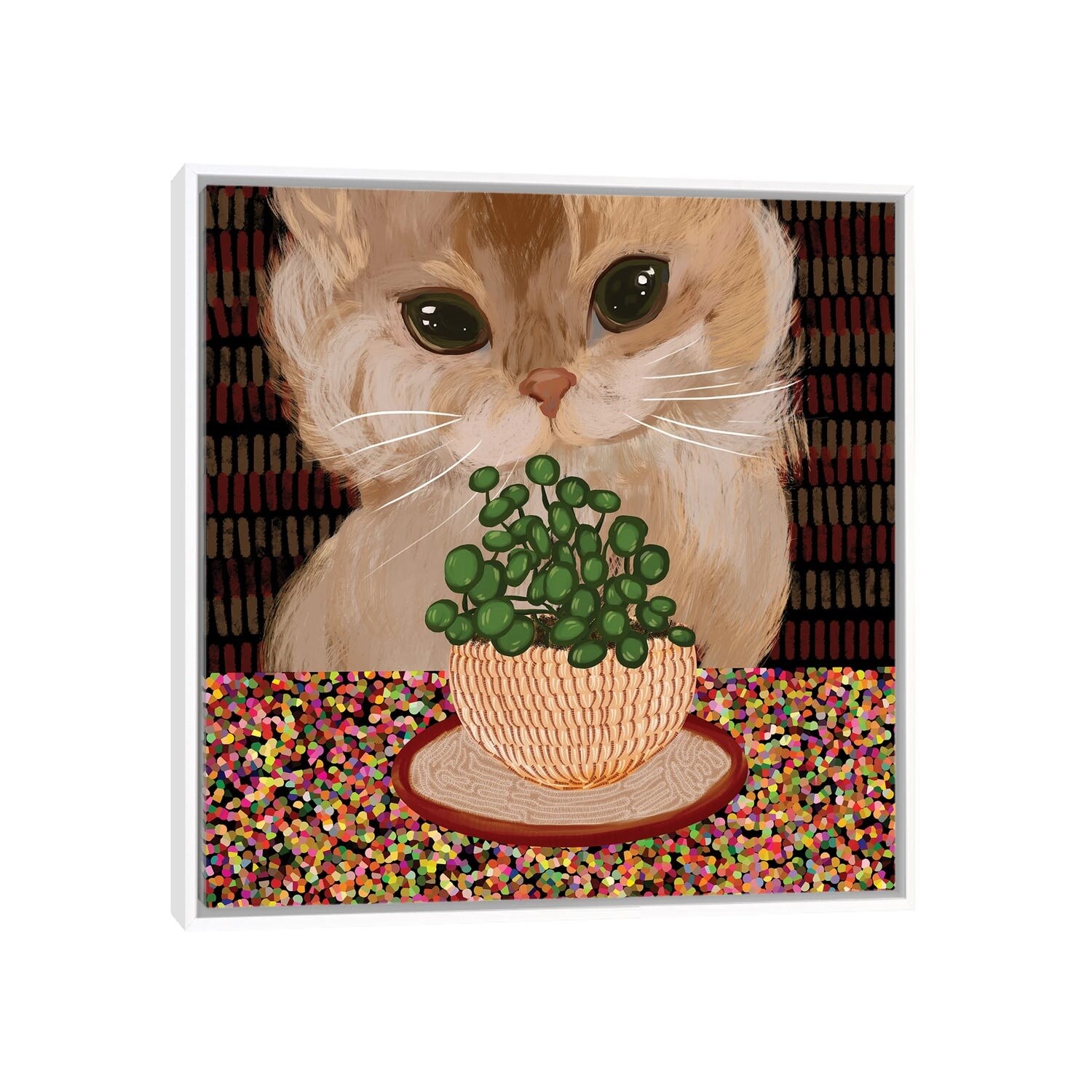 iCanvas "Cat And Pilea Pot" by Cacttone by Ulee Framed