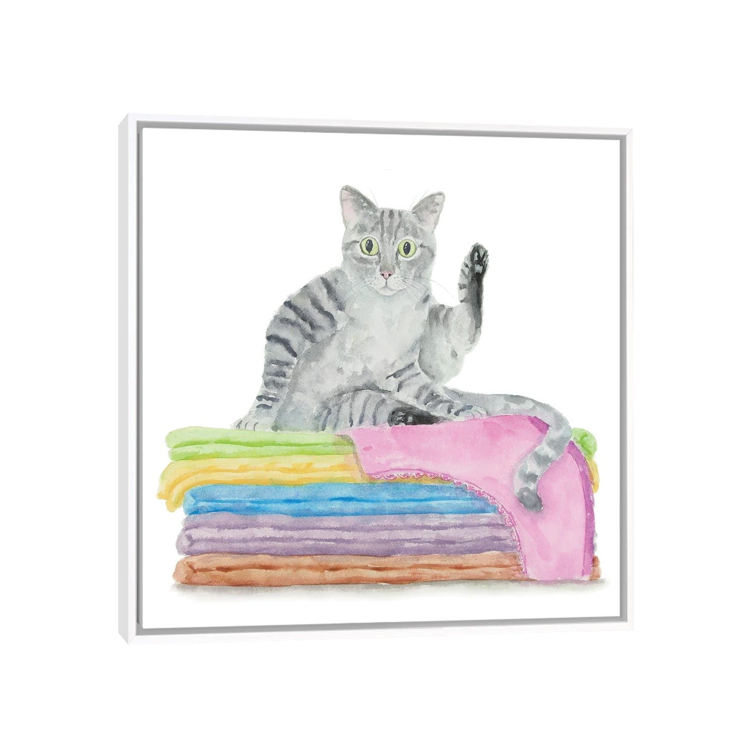 iCanvas "Gray Tabby Cat on Towels" by Alexey Dmitrievich Shmyrov Framed Canvas Print