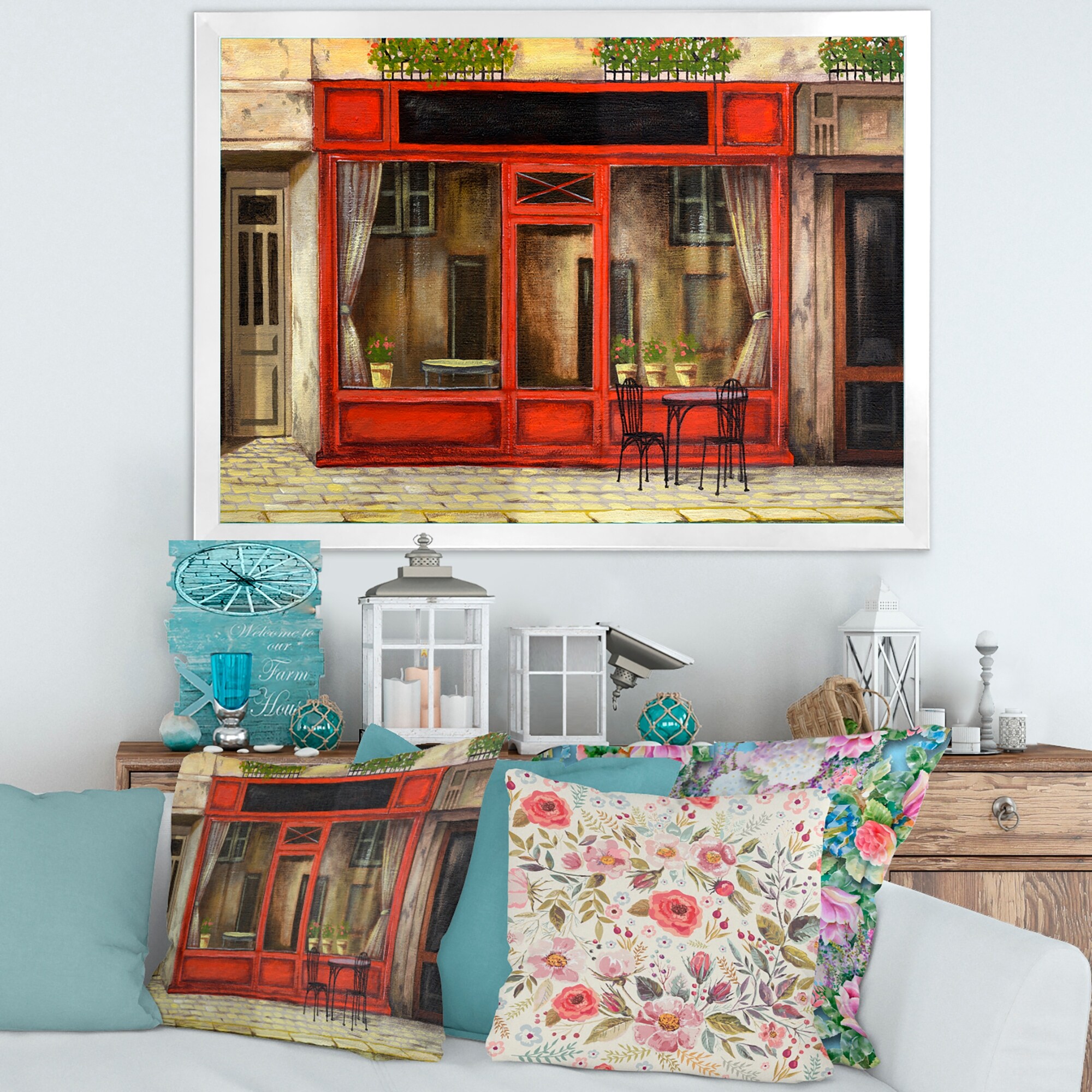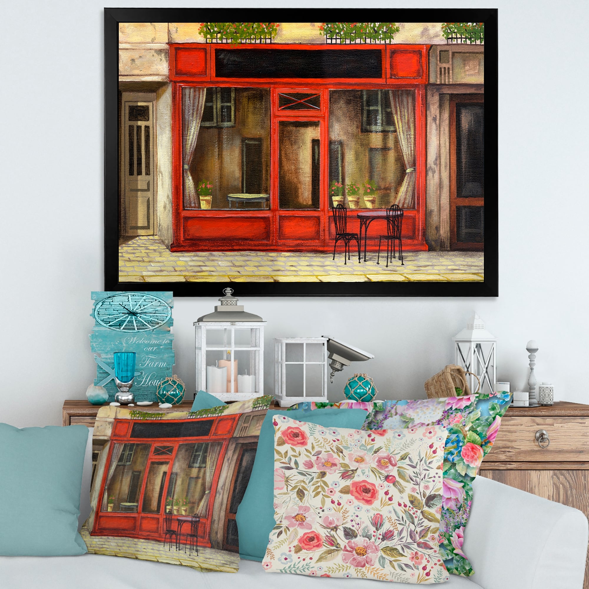 Designart "Red Facade of Charming Shop in Paris I" French Country Framed Art Print