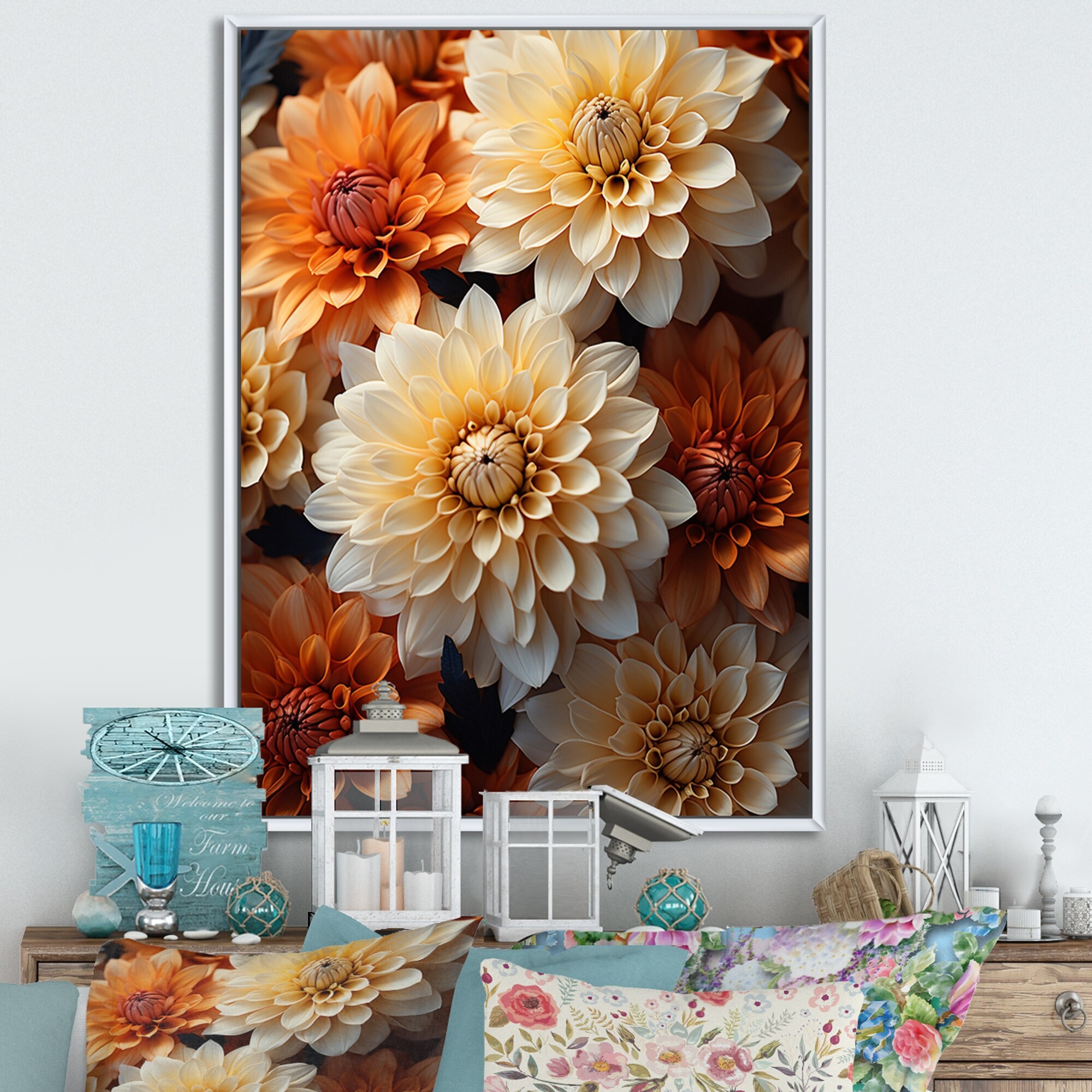 Designart "Coral Orange Charming Chrysanthemums" Chrysanthemums Framed Canvas Wall Art