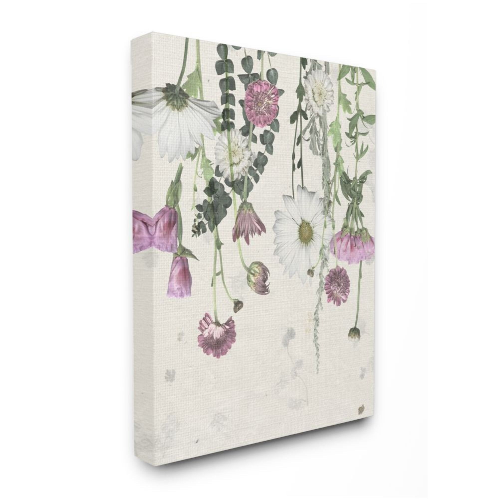 Stupell Hanging Purple Florals with Charming White Daisies Canvas Wall Art