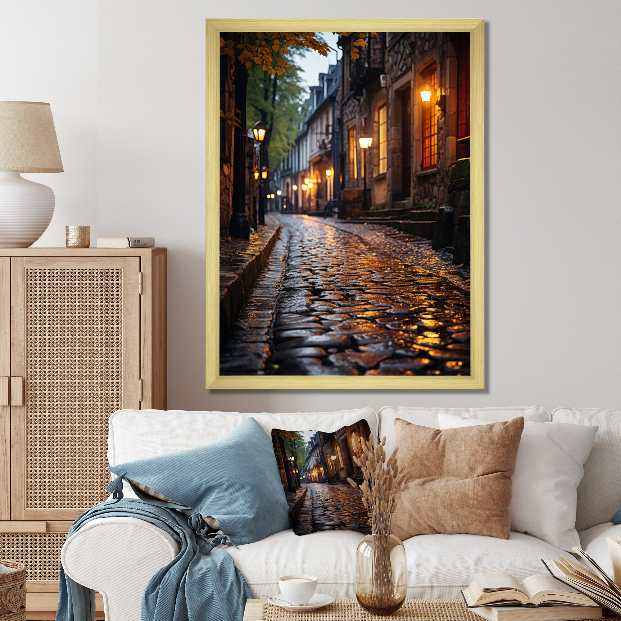 Designart "France Charming Cobblestones" France Framed Wall Decor