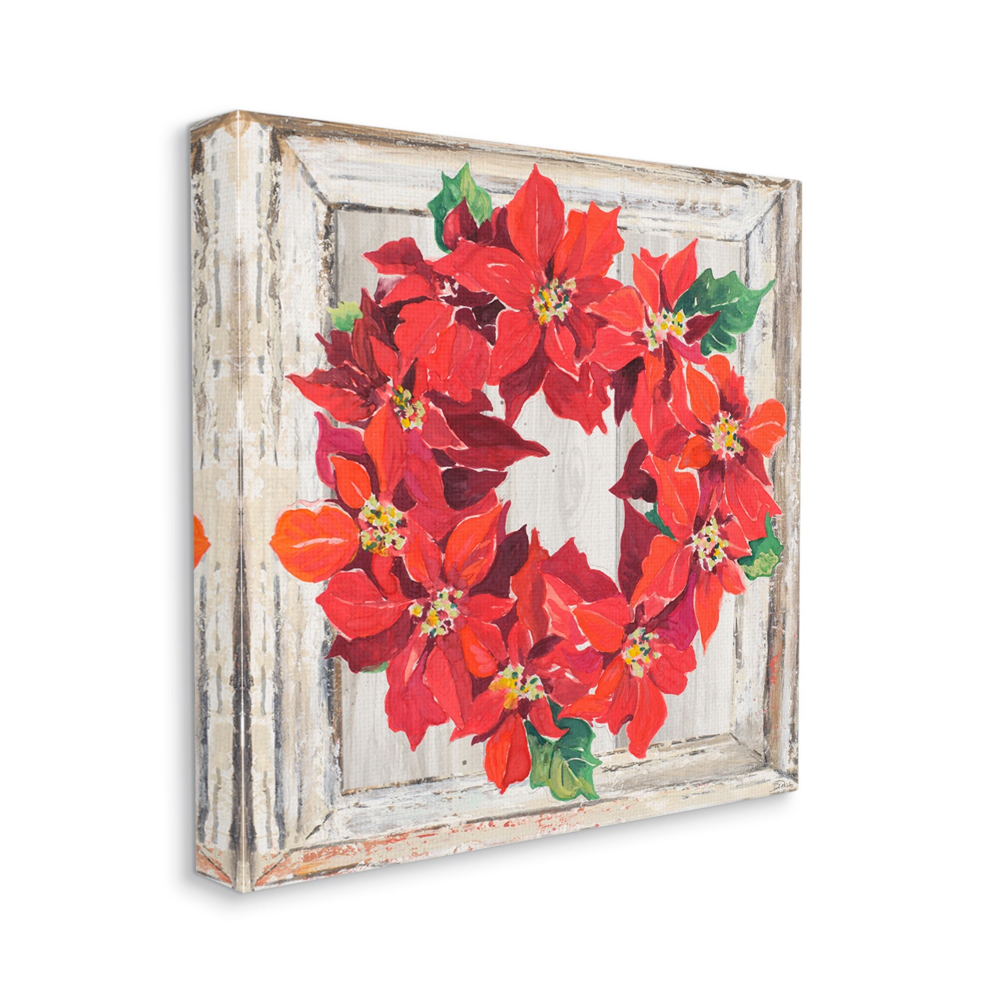 Stupell Charming Winter Poinsettia Wreath Floral Red Canvas Wall Art, 17x17