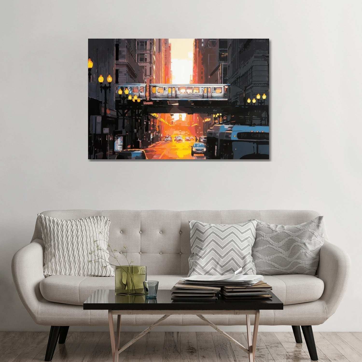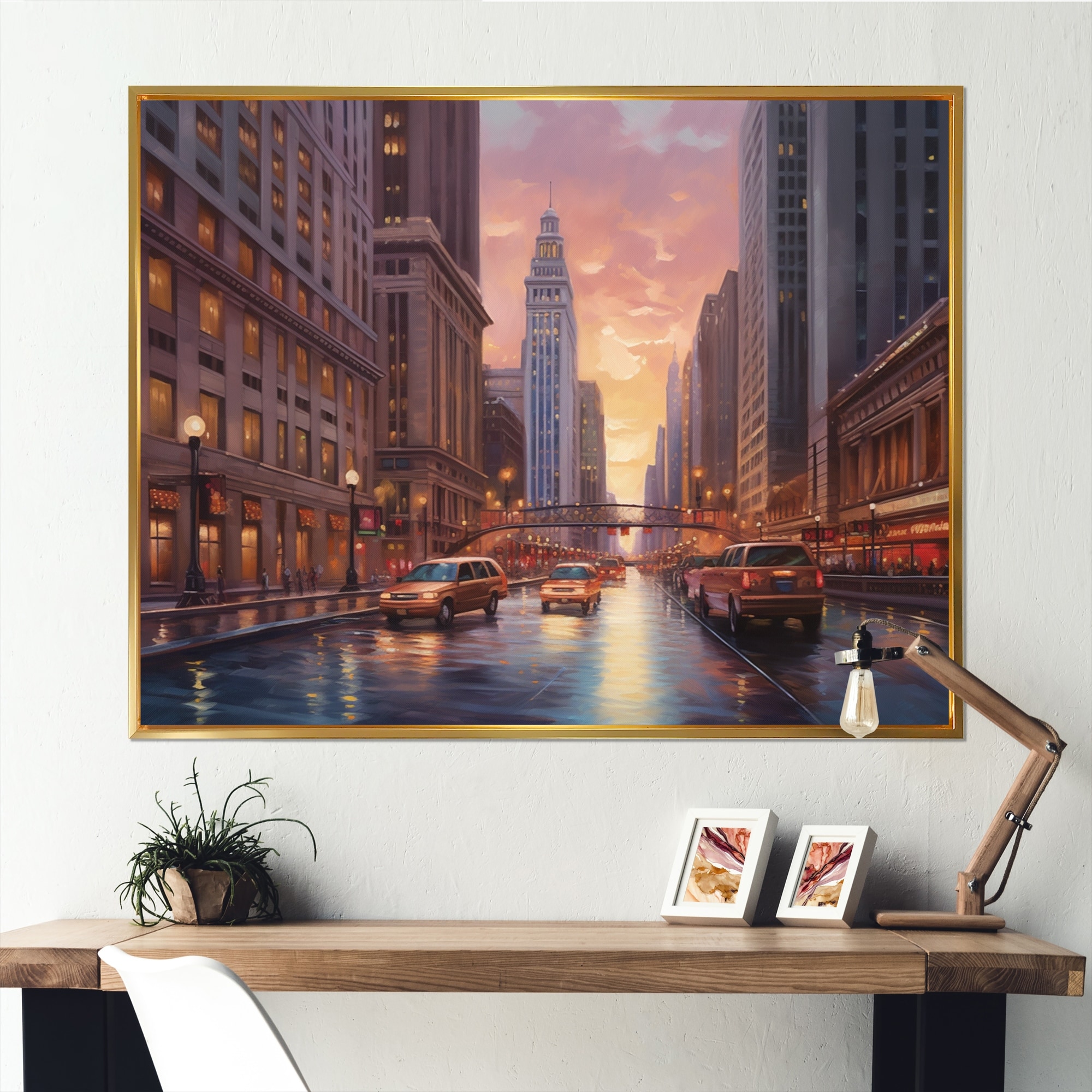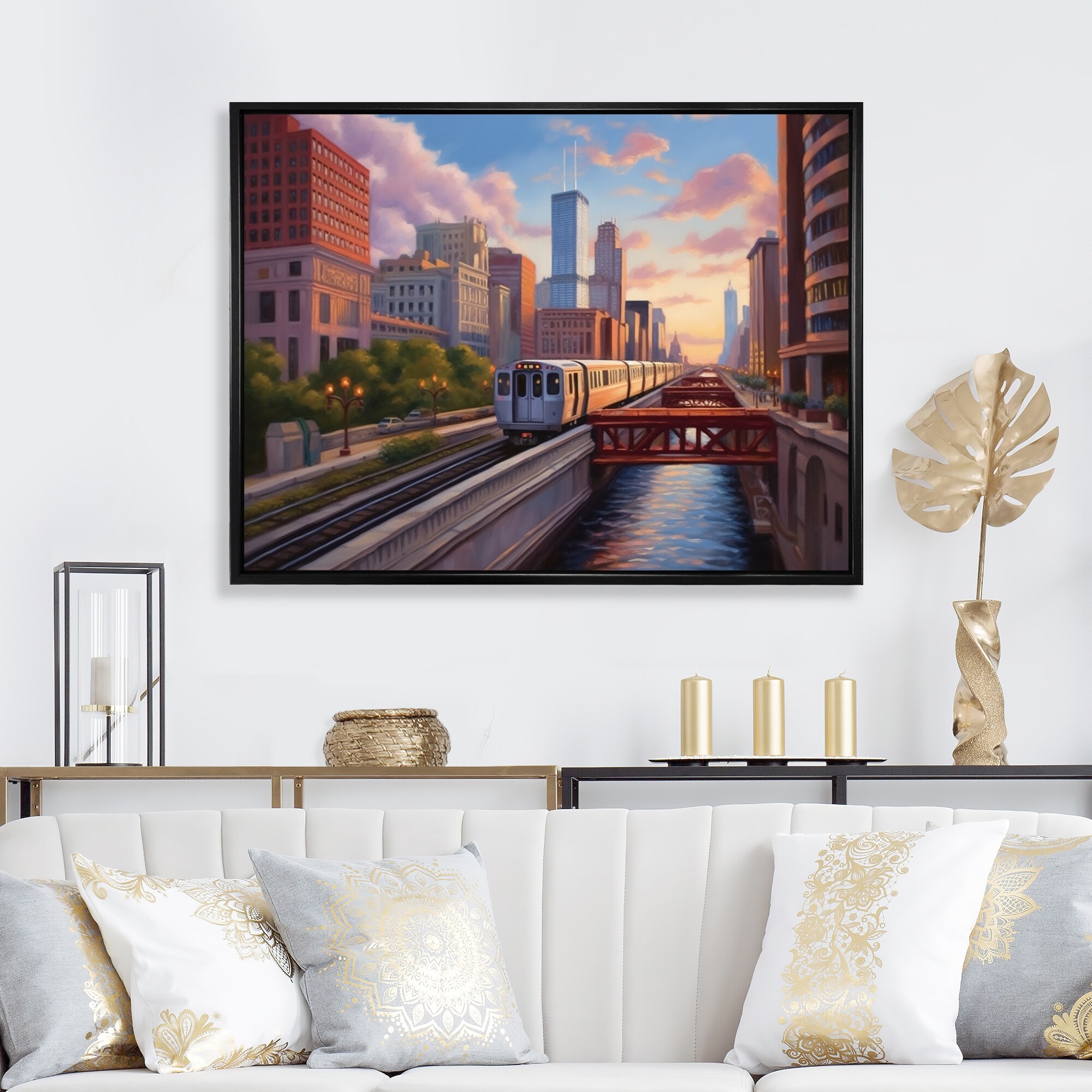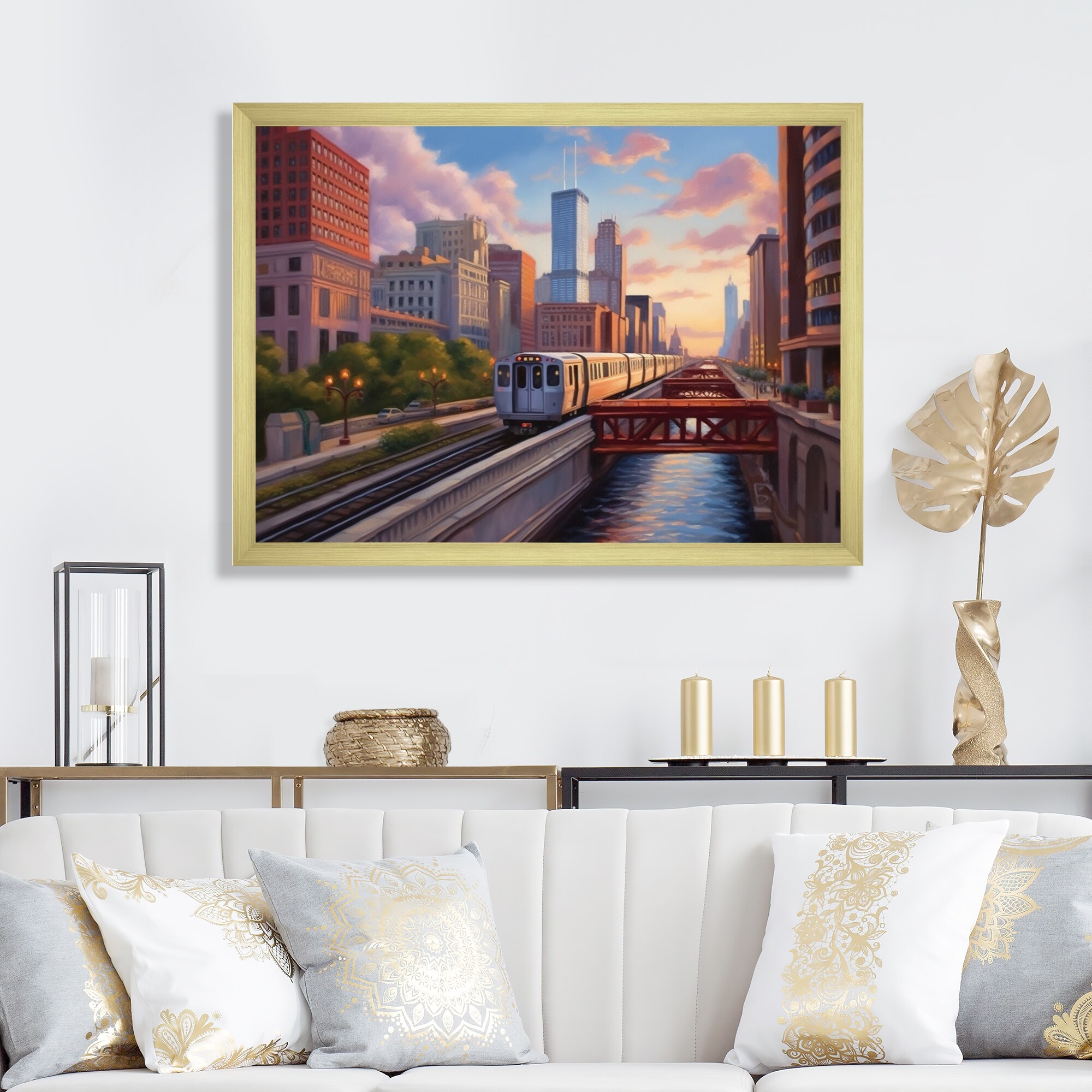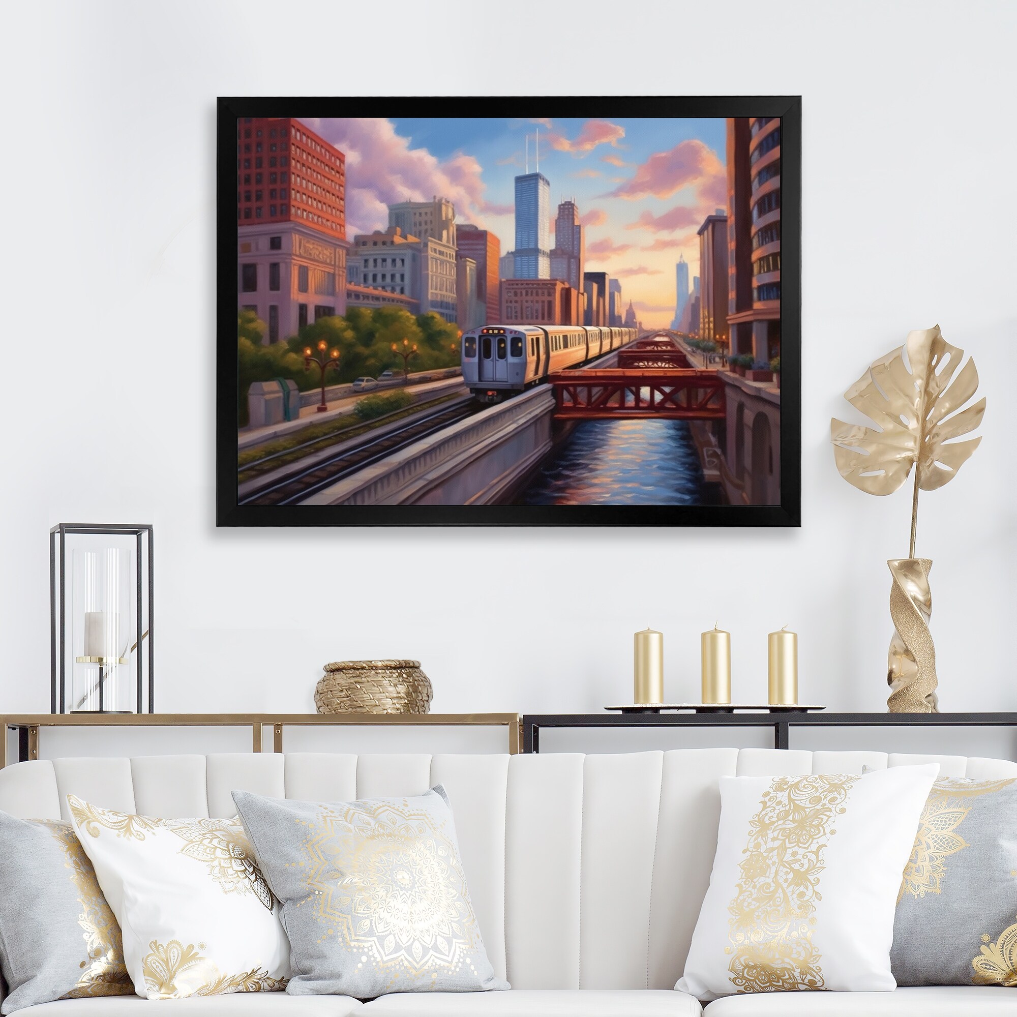 Designart "Chicago City Scene Iii" Landscape Modern Framed Canvas Wall Art
