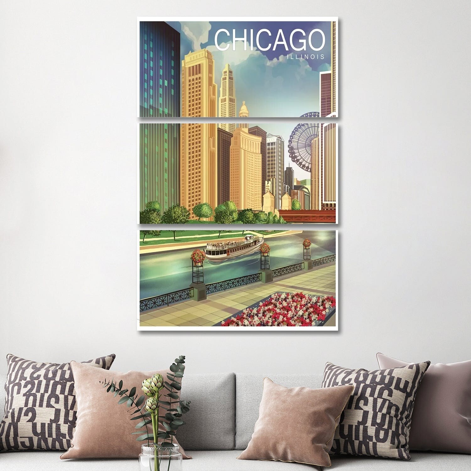 iCanvas "Chicago" by Josh Byer 3-Piece Canvas Wall Art Set