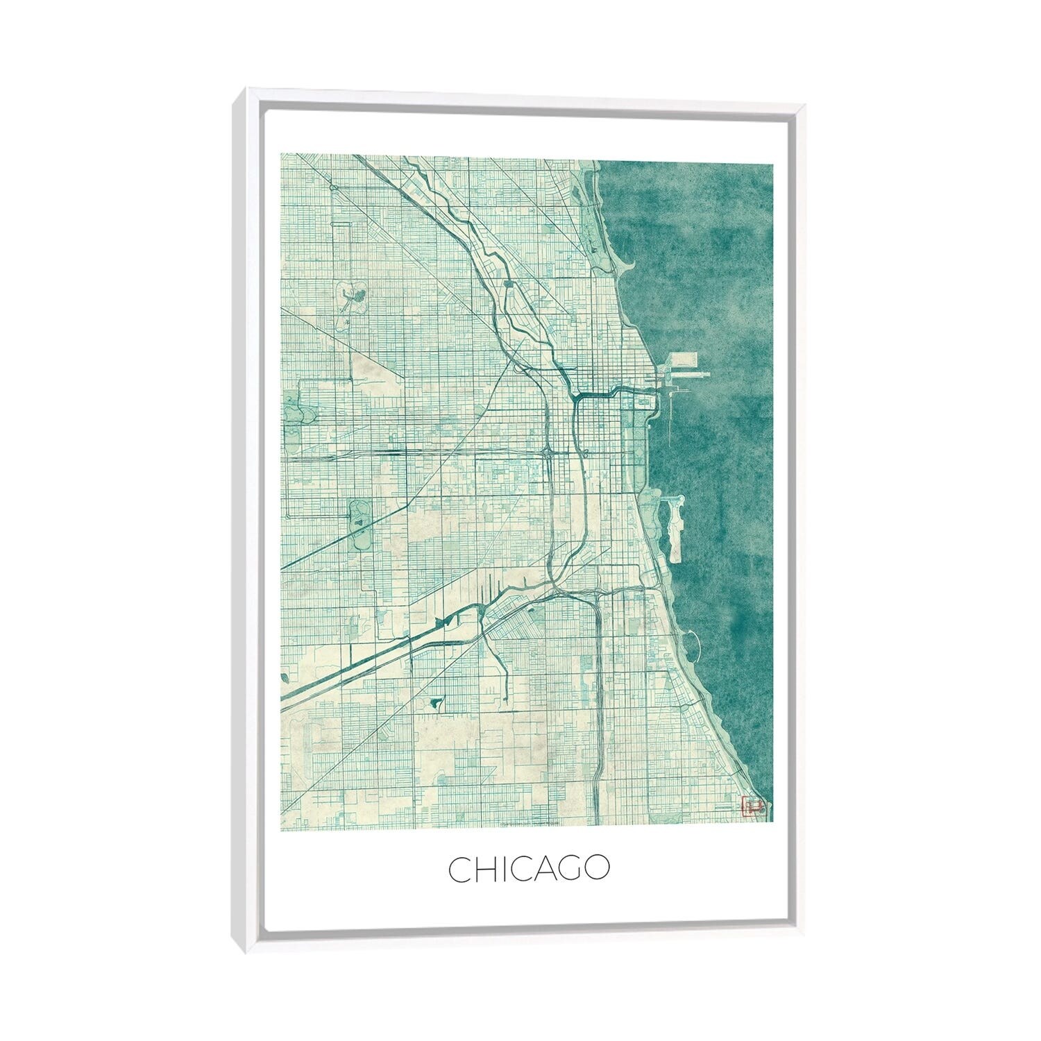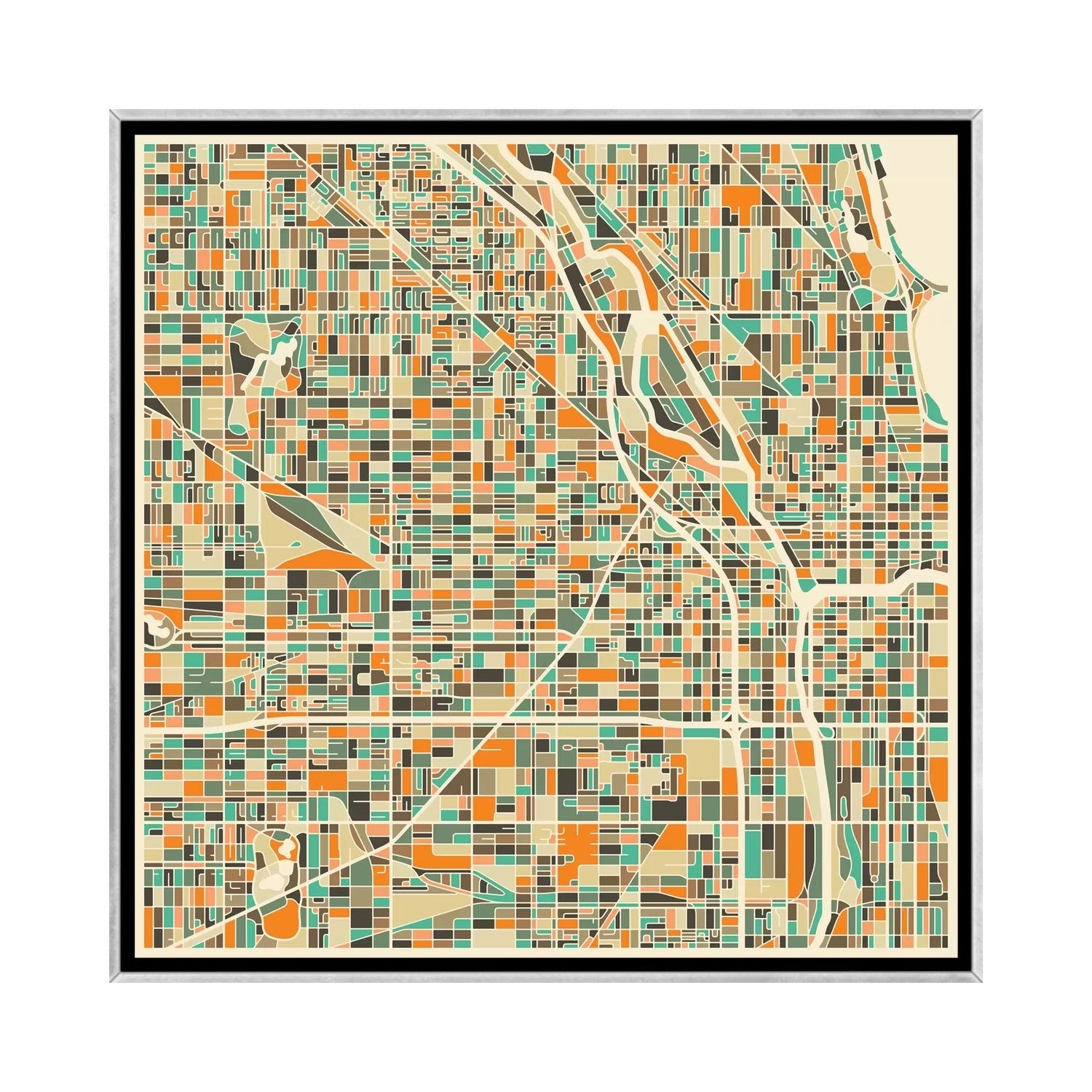 iCanvas "Abstract City Map of Chicago" by Jazzberry Blue Framed