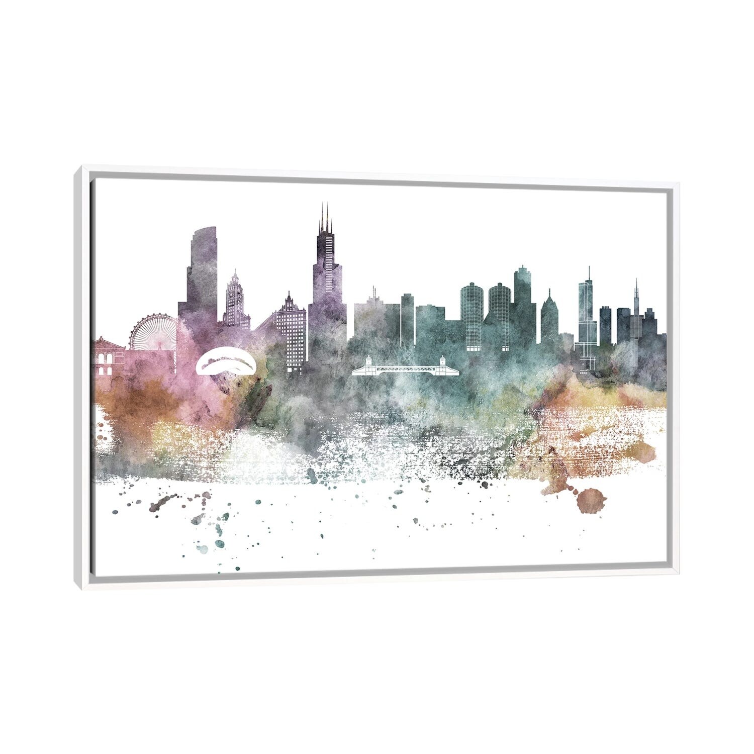 iCanvas "Chicago Pastel Skylines" by WallDecorAddict Framed Canvas Print