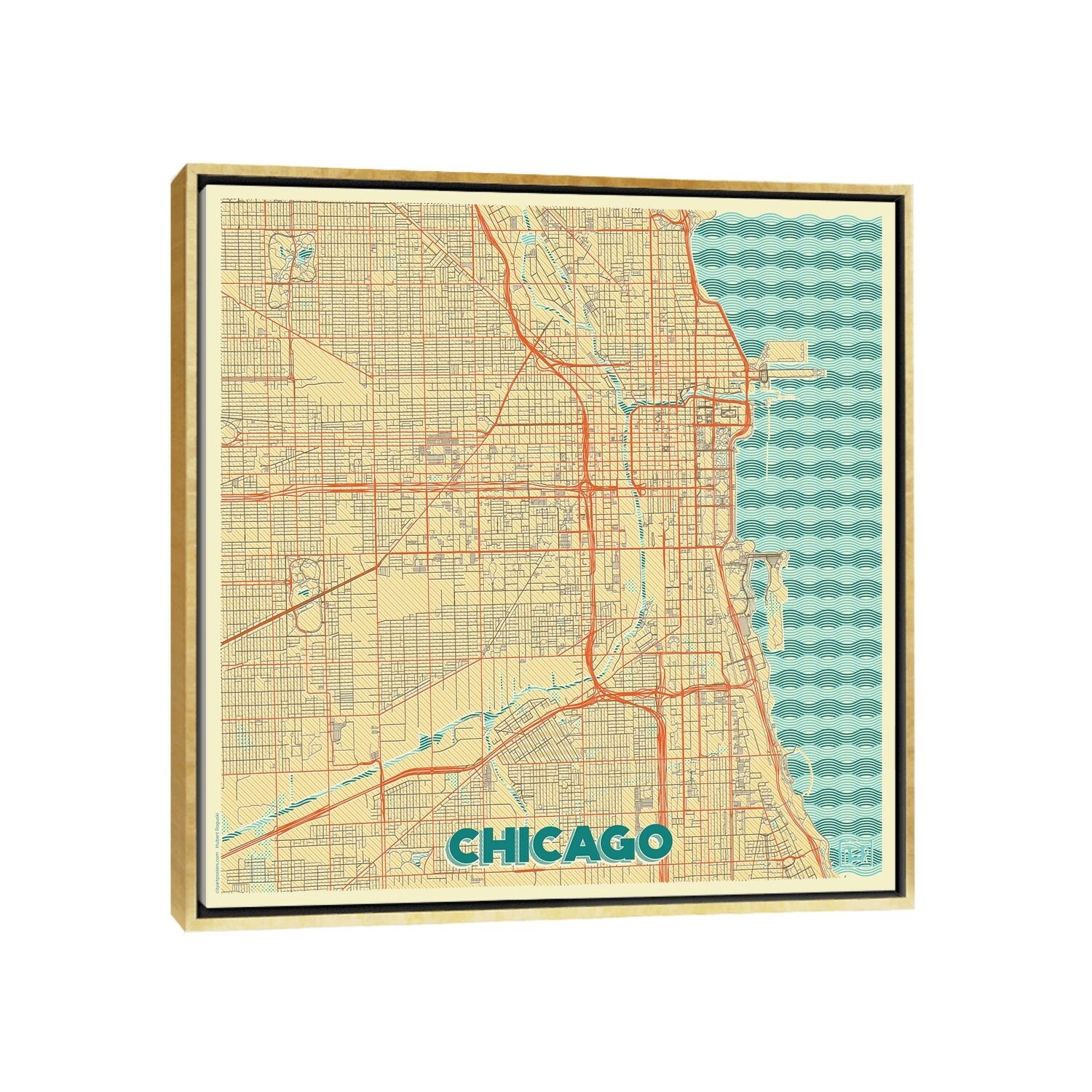 iCanvas "Chicago Retro Urban Blueprint Map" by Hubert Roguski Framed Canvas Print